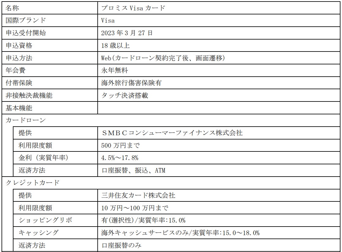 本カードはプロミスでのお借入に加え、Visaのクレジットカードでのお買物にもご利用いただける年会費永年無料のカードです。カード券面からカード情報(クレジットカード番号、有効期限、セキュリティコード)の表記をなくした、「安心・安全」なナンバーレス仕様のカード「三井住友カード(NL)」の商品性をそのままに、プロミスのカードローン機能を搭載しました。