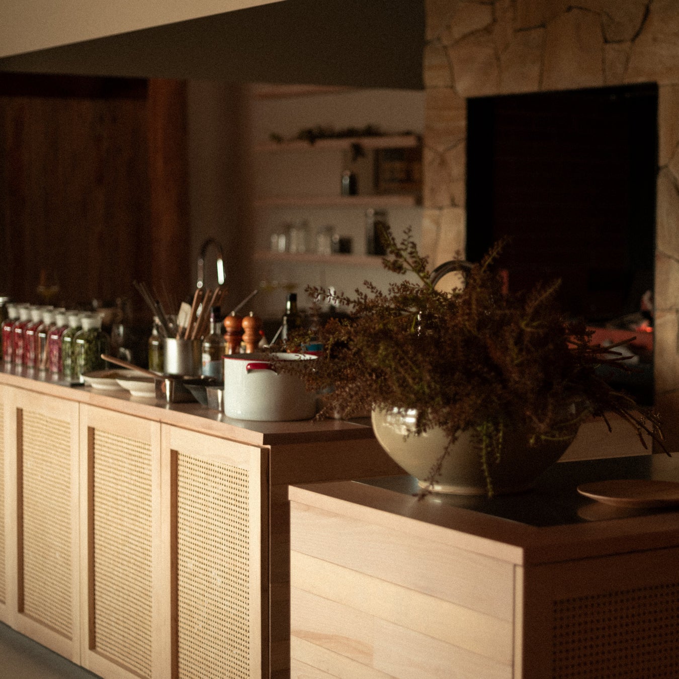 今回の『MORISHIRO』もこれまでと同じようにレストランを開きます。食材や調味料、調理工程、サービス、建物、ごみの行く末に至るすべてをお客様にご覧いただけるようにします。つくり手にとってキッチンはすべてをお伝えする最高のステージです。そのステージはオープンキッチンのしつらえにし、薪火台で食材に火を入れます。きっと、片時も目を離すことができないでしょう。つくり手の息づかいまでも感じられる距離で調理する様子をダイレクトに感じながら、目で楽しみ、鼻で香り、舌で味わう森の料理をお楽しみください。