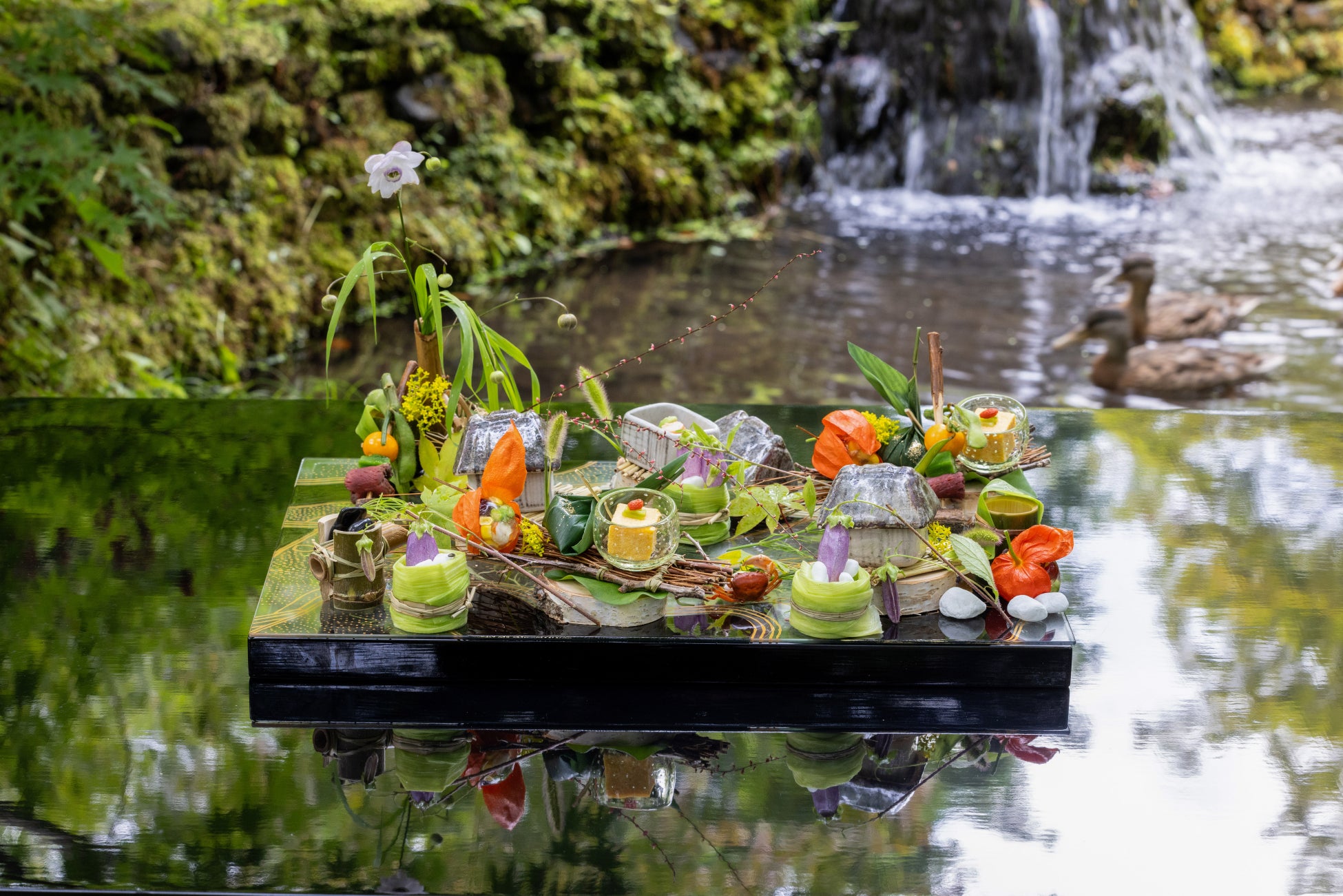 棚田ラウンジは、空気の澄んだ早朝、差し込む木漏れ日が水面に煌めく日中、満点の星空が棚田を照らす夜と、時間帯で景色や空気感が大きく変わります。その時間や季節ごとだけの最高の瞬間を楽しんでいただくために、様々な過ごし方を提案します。 例えば、夏夜に涼を感じる棚田の夕涼み席で楽しむ特別懐石。秋には、徐々に色づく黄葉に囲まれながら味わう秋のアフタヌーンティーなど、その季節や時間だからこそ楽しめる体験を用意します。