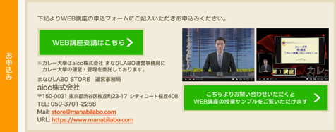 カレー事情を加味したコンテンツとなっております。 日本の最高峰のカレー講座と言えます。