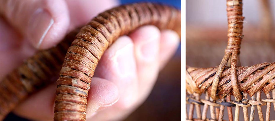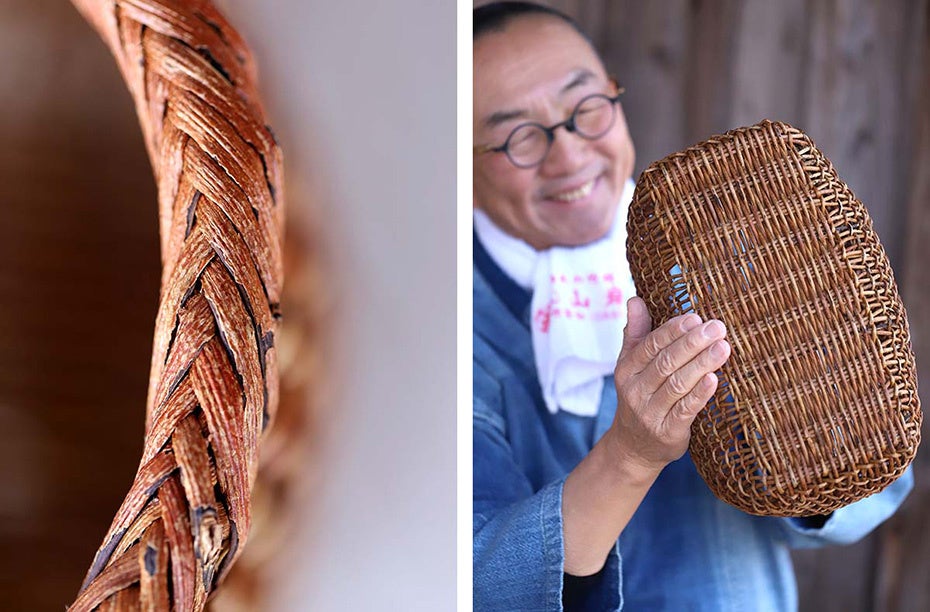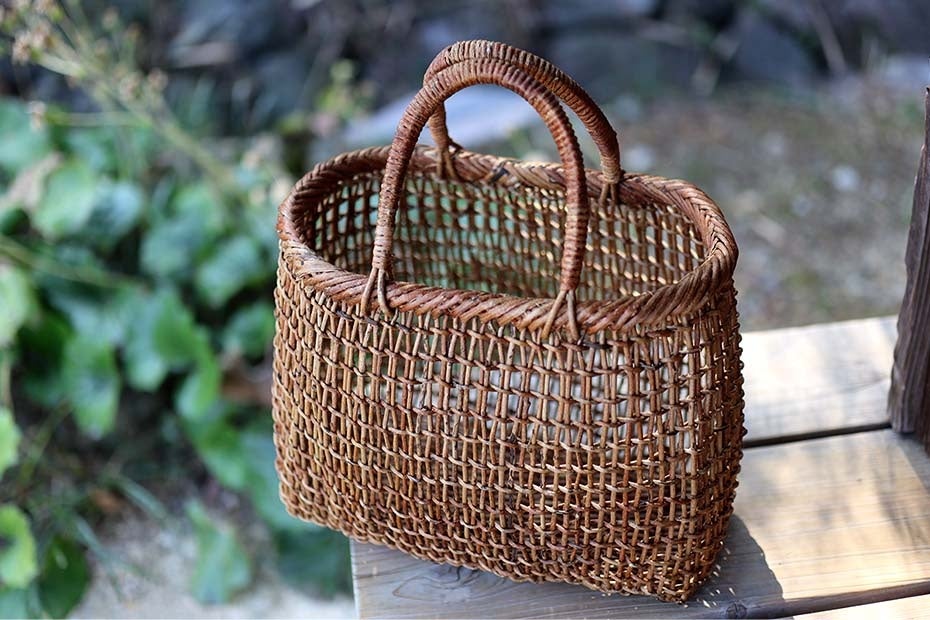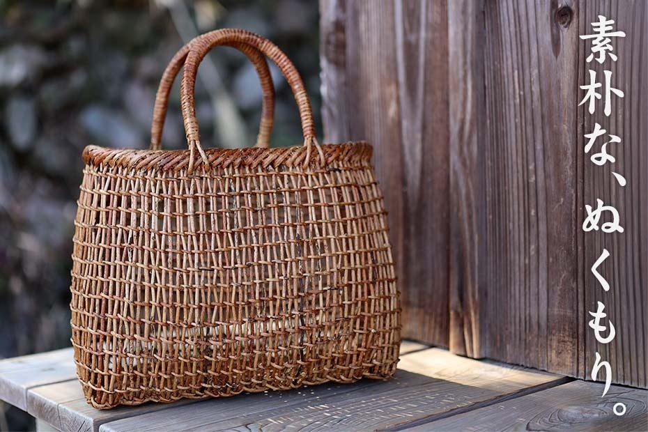 「あけびこだし編み手提げ籠バッグ」が新発売。国産あけびの良質な蔓のみを厳選し、手間のかかる材料取りから丁寧に仕立てた手提げ籠バッグは、職人が伝統技法で編み上げた、使うほどに色艶が深まる逸品です。