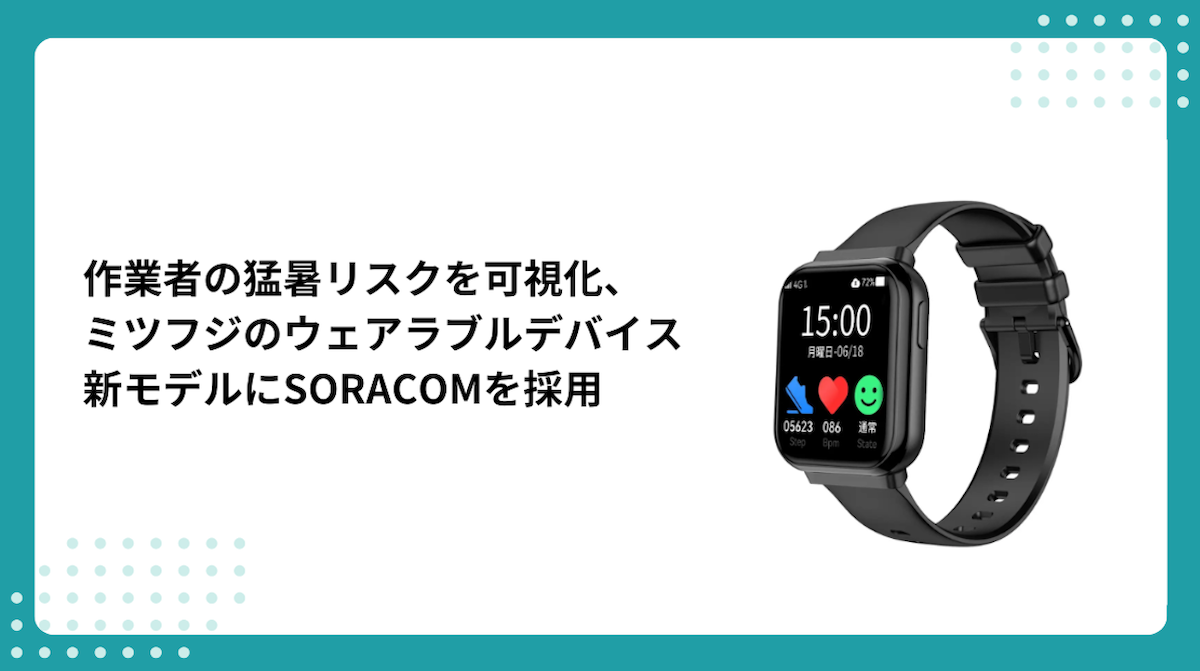 株式会社ソラコム(本社:東京都港区、代表取締役社長 CEO 玉川 憲)は、ミツフジ株式会社(本社:京都府精華町、代表取締役社長 三寺 歩)が提供する、猛暑リスクを可視化し、作業者の安全を守るウェアラブルデバイス「hamon band」シリーズの新モデル 「hamon band N(ハモンバンドエヌ)」に、IoTプラットフォーム「SORACOM」が採用されたことをお知らせします。