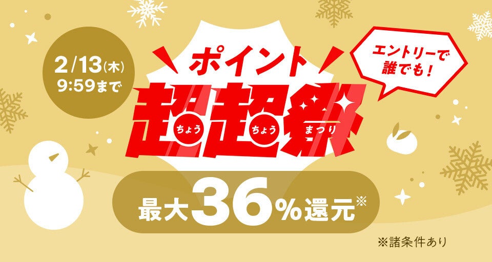 〈ポイント超超祭〉最大7% 〈買い得メンバーズ〉最大10% 〈店舗からのポイント〉最大19% 〈三太郎の日(2025年2月13日限定)〉最大5% 【合計】 最大41% |