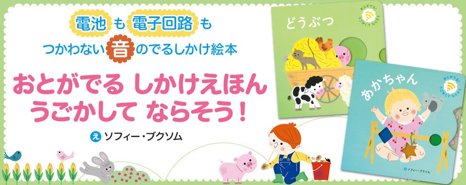【新発売】電池や電子回路を使わないで音が出る絵本!「あかちゃん」「どうぶつ」の2冊が発売!