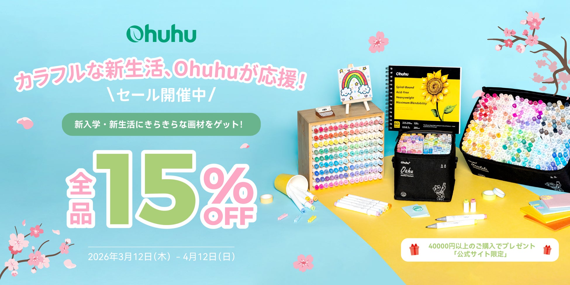 さらにOhuhu公式オンラインショップでは、新生活フェアを同時開催中!キャンペーン期間中にご購入いただいたすべての方が対象。全品15%OFFセールを実施中です。ぜひこのお得な機会をお見逃しなく!塗り絵コンテストも楽しみましょう♪