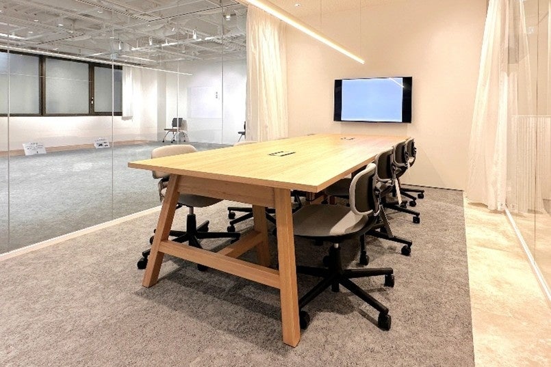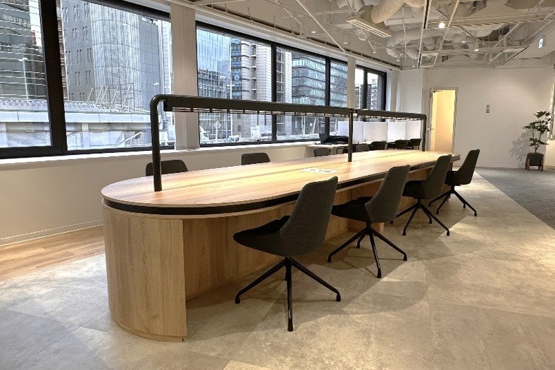 本物件は、約62坪の広さがあり、会議室を2室、オンラインミーティング等に利用できる個室を2室、ソファやカフェテーブル、カウンター席など、気軽に集まりやすいスペースを複数配置しました。気軽な相談やアイデア交換が自然に生まれるよう設計されており、コミュニケーションの質を高める働き方を後押しします。