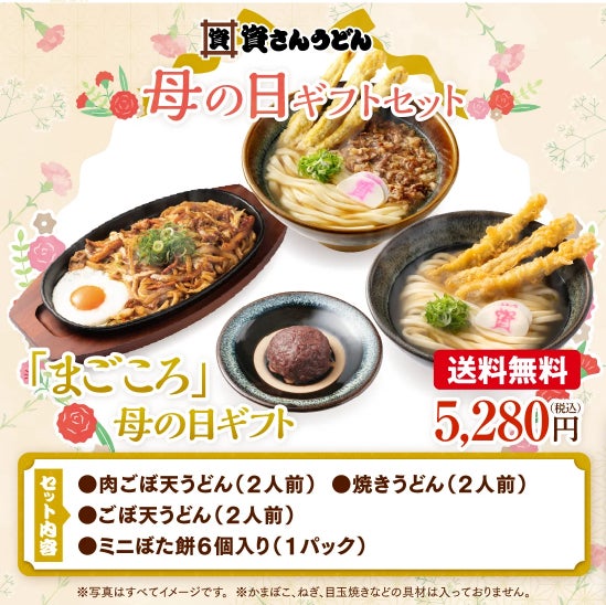 資さんうどんでは、毎年好評いただいている『母の日ギフト』を今年も販売いたします!