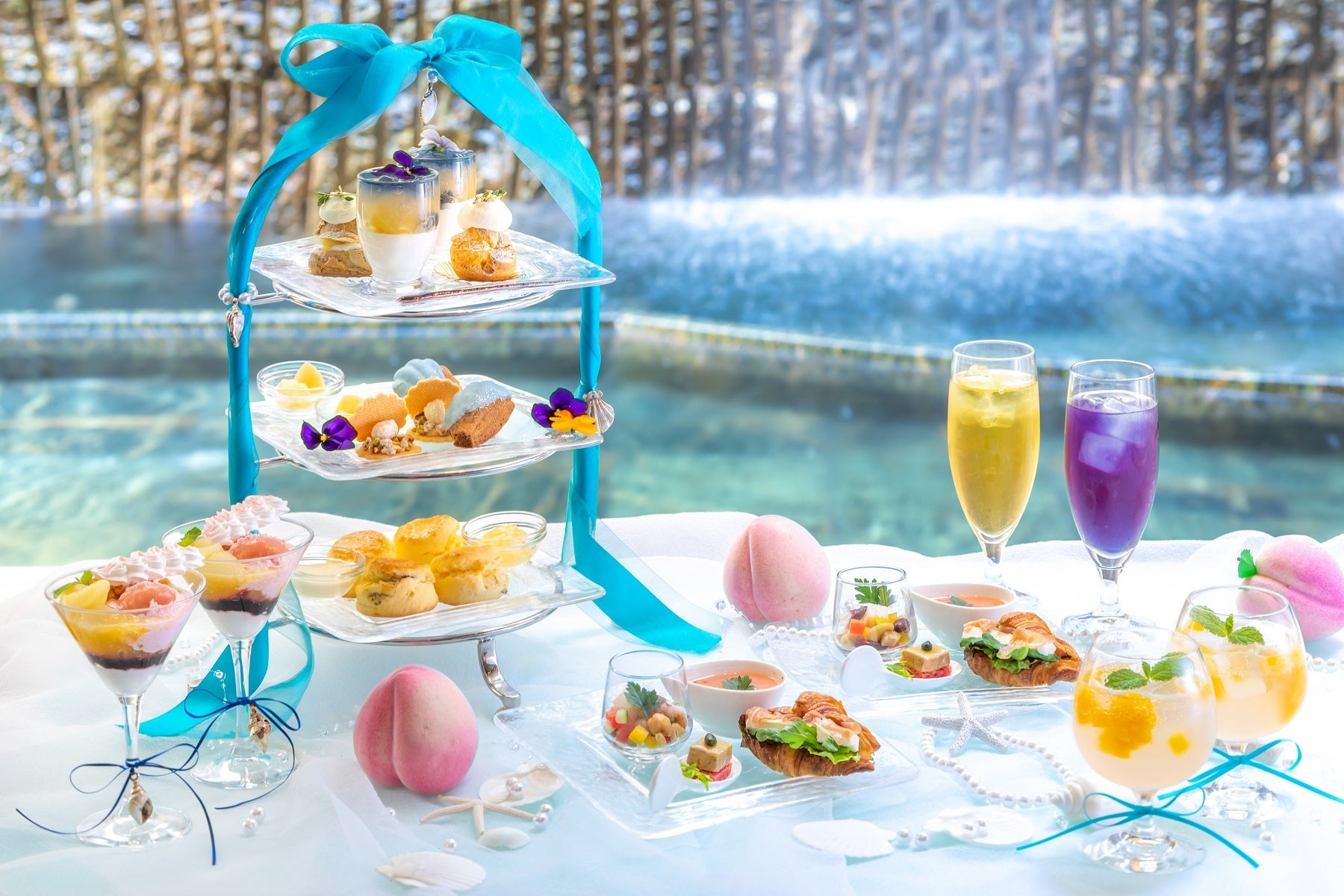 2名さまで10,600円相当のアフタヌーティーセットをお楽しみいただけるペアチケット。9月15日までは、旬を迎える瑞々しい桃をふんだんに使った、涼やかな「ピーチマリンアフタヌーンティーセット」をご用意しています。ご友人や大切な方と優雅なひとときをお愉しみください。
