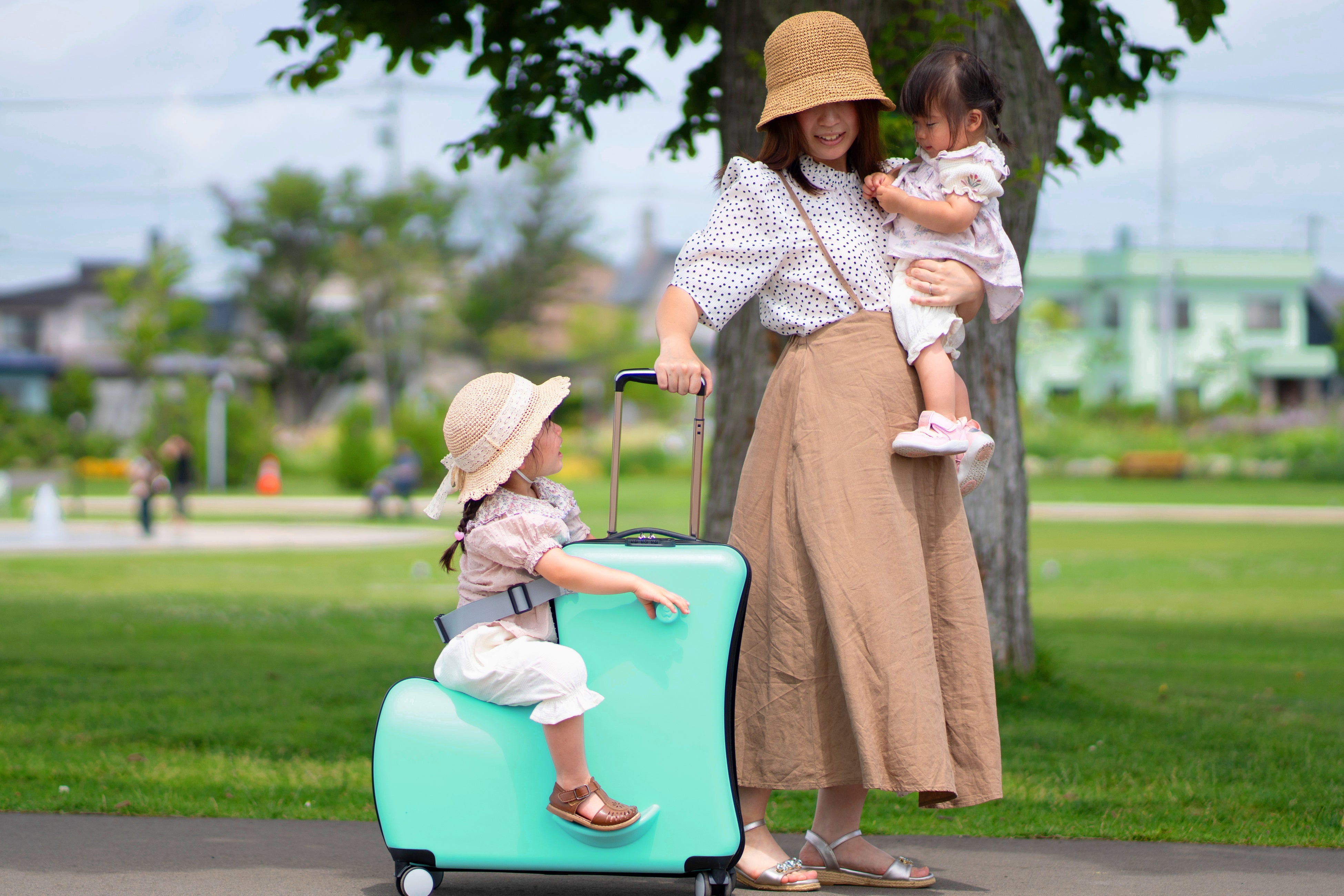 荷物と子供を一緒に連れて行けるので、旅行にはもちろん便利だが、近くの公園に行くのも便利。