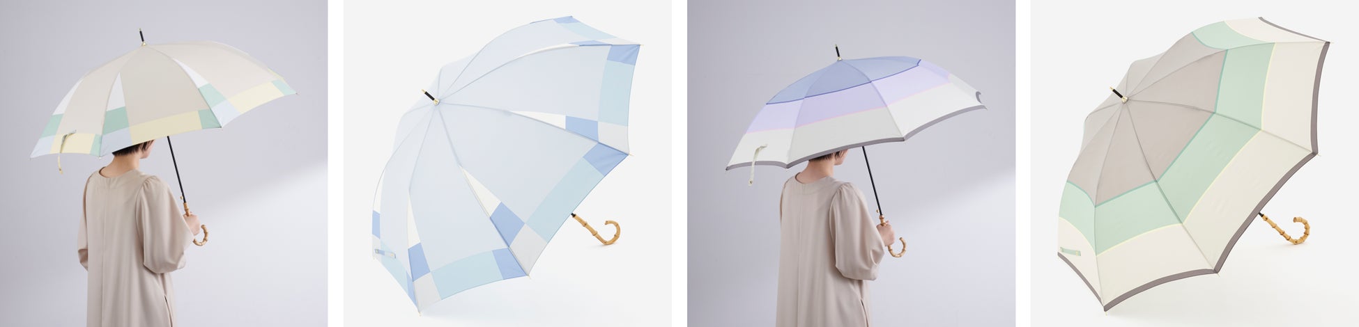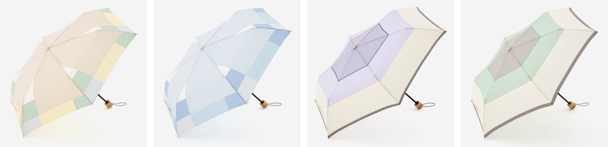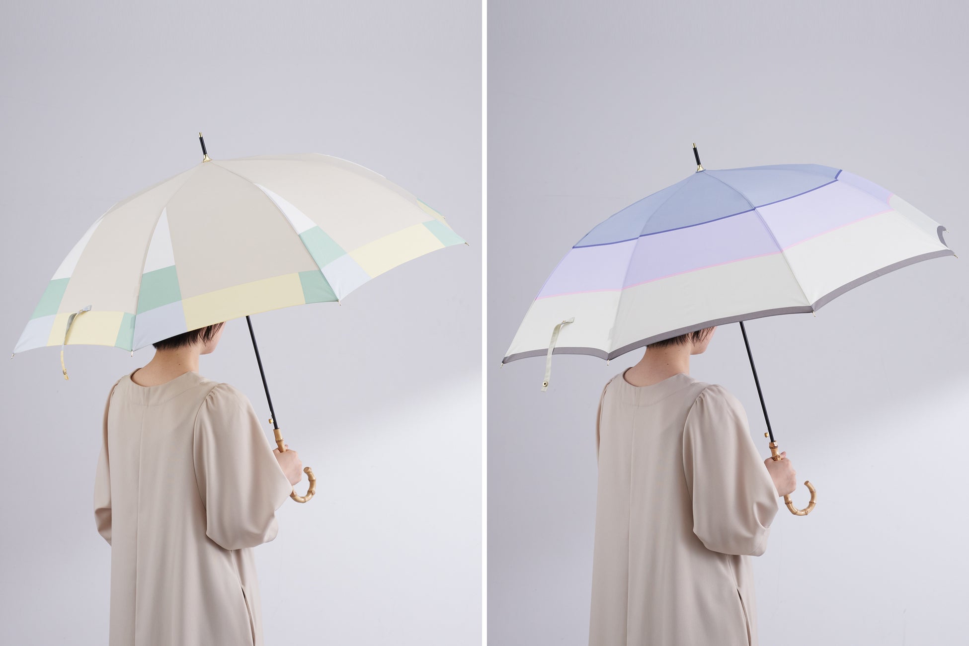 今年は、生地デザインはもちろん、ハンドルなど細部までこだわった新商品が登場。生地デザインは、開いたときのブロック柄が大胆で楽しい「カラーブロック柄」と、メリハリがあってバランスの良い「マルチボーダー柄」の2柄展開です。KEYUCAのオリジナルデザインで、コーディネートにも合わせやすく、開く度に心躍る1本です。また、ハンドル部分には竹を使用し、節の凹凸によって握りやすくなっています。