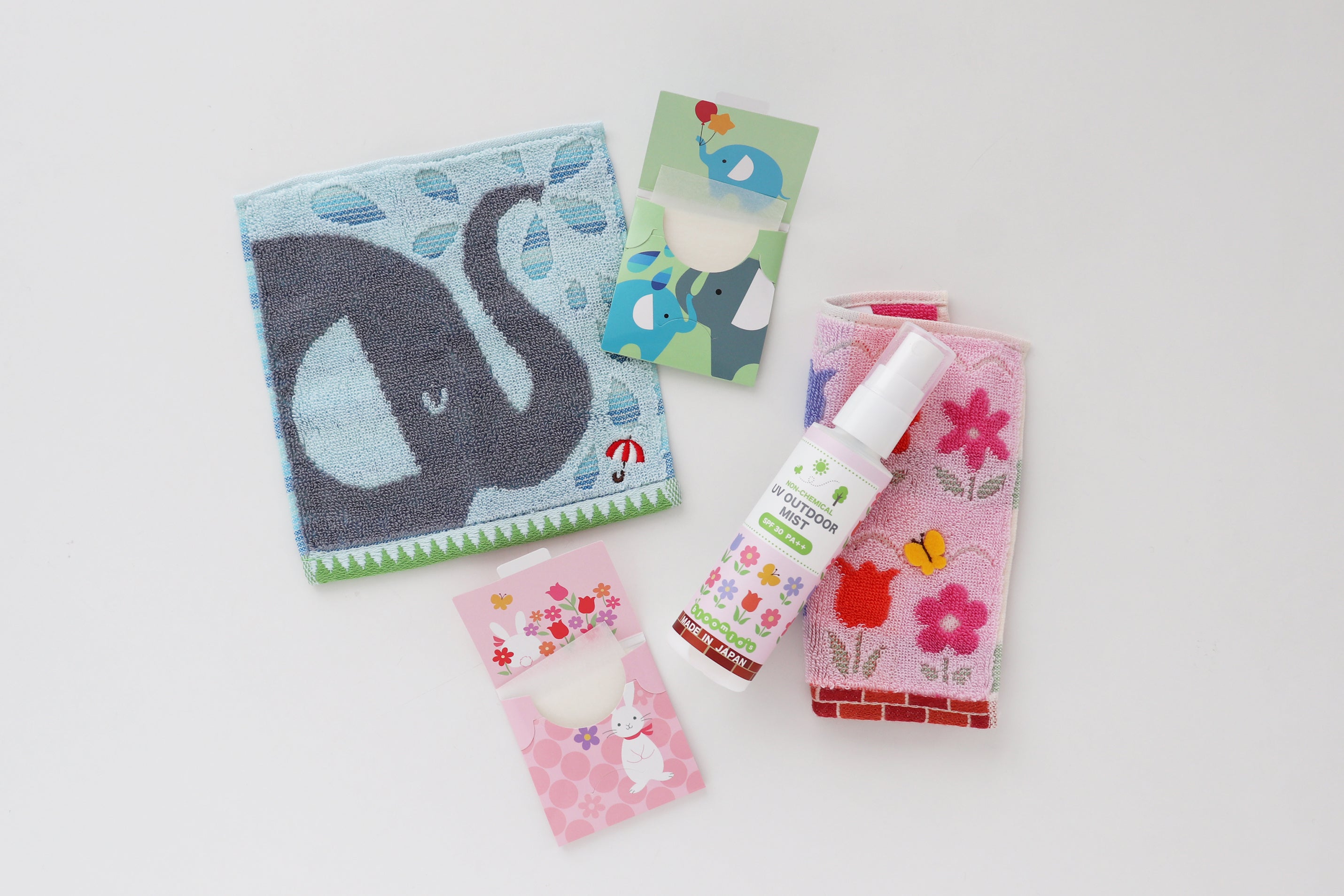 創業140年 ハンカチ企画販売をおこなうブルーミング中西から春先のお出かけにぴったりなこども用※UVミストと紙せっけんを発売