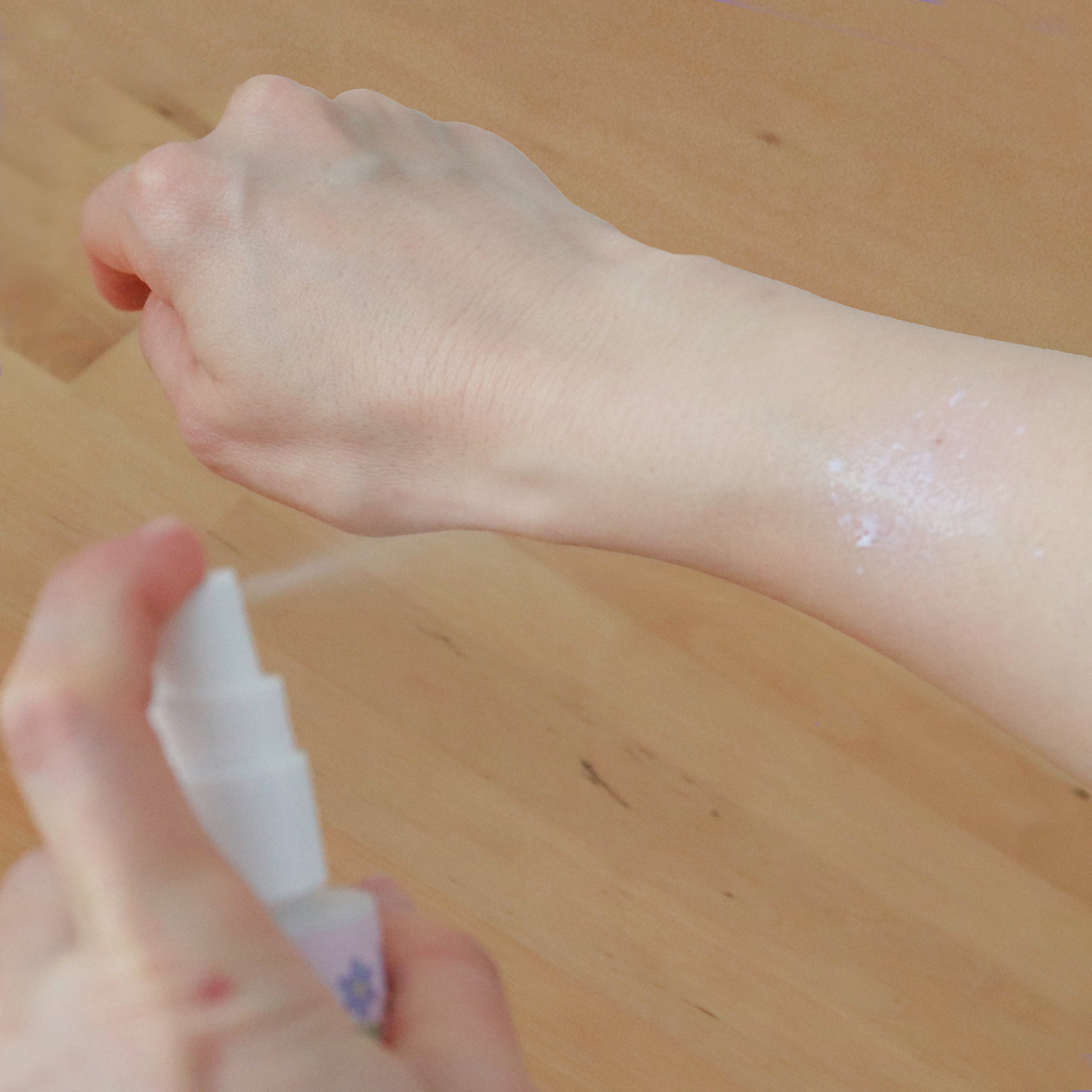 <全成分>水、BG、グリセリン、酸化チタン、ペンチレングリコール、(ラウリン酸/オレイン酸/セバシン酸)ポリグリセリル-10、ラバンデュラハイブリダ油、グリチルリチン酸2K、ニオイテンジクアオイ油、ティーツリー葉油、コウスイガヤ油、レモングラス油、含水シリカ、コメヌカ油