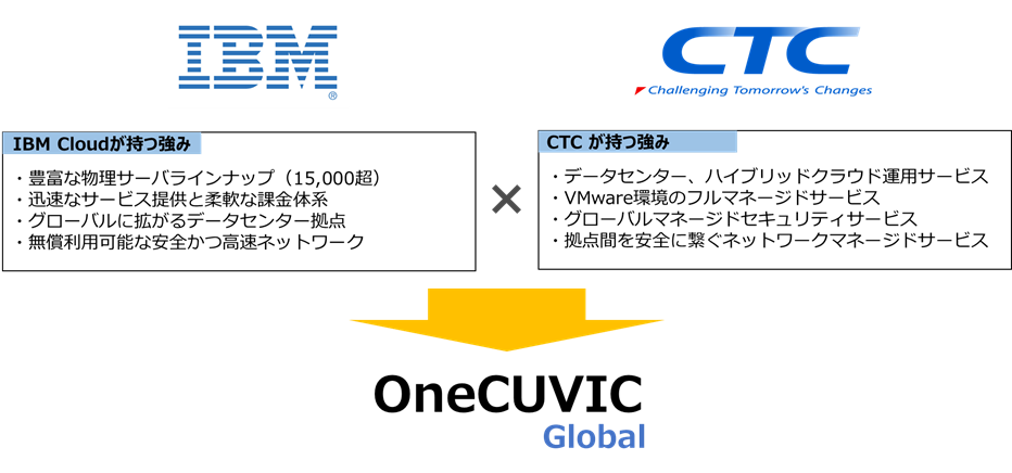 伊藤忠テクノソリューションズ株式会社(代表取締役社長:柘植 一郎、本社:東京都港区、以下:CTC)は、日本アイ・ビー・エム株式会社(代表取締役社長:山口 明夫、本社:東京都中央区、以下:日本IBM)がグローバルで展開しているクラウドサービス「IBM Cloud」上で、オープンハイブリッドインフラサービス、マネージドサービス、セキュリティサービス、クラウドネイティブサービスなどで構成するハイブリッドクラウド支援サービス「OneCUVIC」の提供を開始します。CTCは、エンタープライズグレードのハイブリッドクラウド環境において、安全で効率的なITインフラサービスの利用を求める企業を中心にOneCUVICを展開し、3年間で650億円の売上を目指します。