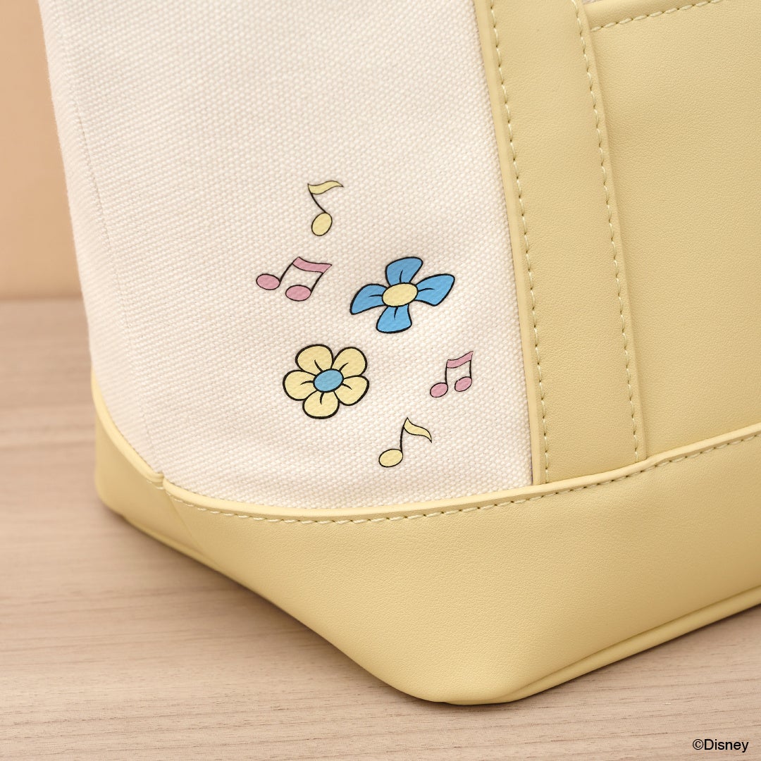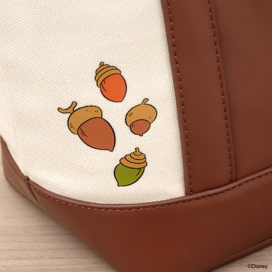 背面に「チップ」と「デール」の大好物のどんぐり、「クラリス」のカラフルな花と音符のモチーフがプリントしたこだわりが詰まったデザイン。裏地は総柄デザインで、中まで華やかに。