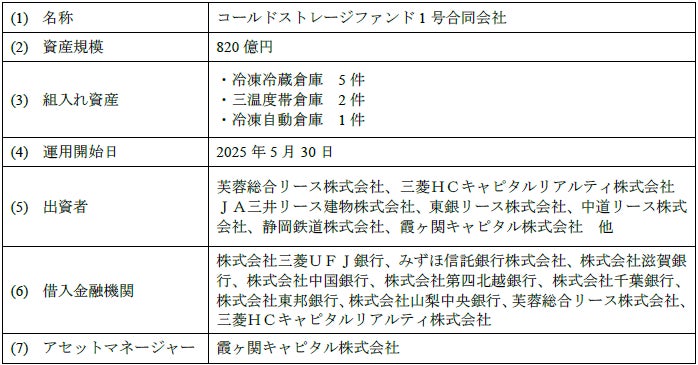 本ファンドは、一般的なドライ倉庫のファンドとは差別化を図った、環境配慮型の冷凍冷蔵倉庫に特化した長期運用型ファンドであり、冷凍冷蔵倉庫をメインとしたファンドとしては国内最大級のものとなります。また、当社としても最大規模のファンド組成であり、本プロジェクトでは、株式会社三菱UFJ銀行をアレンジャーとする大型のシンジケートローンを組成するなど、数多くの金融機関、投資家から資金の提供を受けています。