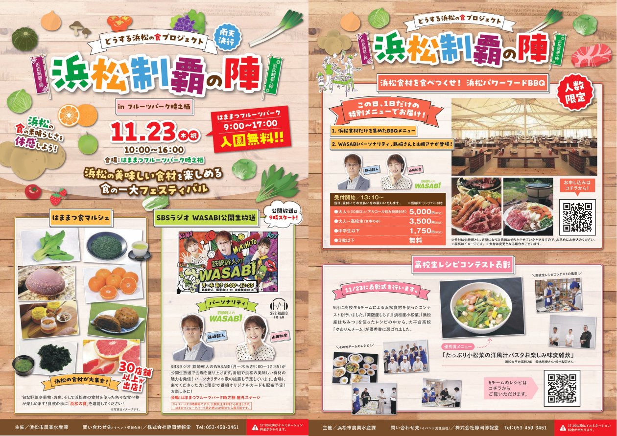 【浜松の美味しい食材が満載!】どうする浜松の食プロジェクト「浜松制覇の陣 inフルーツパーク時之栖」の開催について