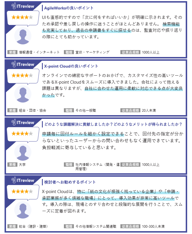 「ITreview」に寄せられたユーザーからのレビュー
