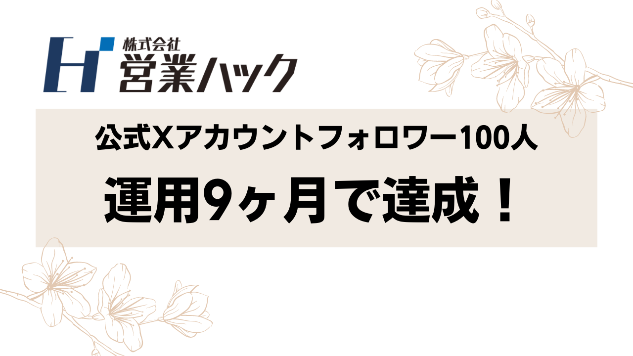【株式会社営業ハック】公式X(Twitter)フォロワー100人突破を運用9ヶ月で達成!