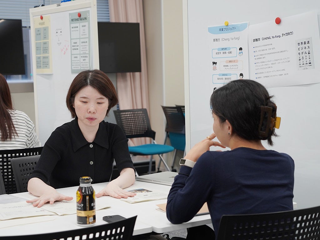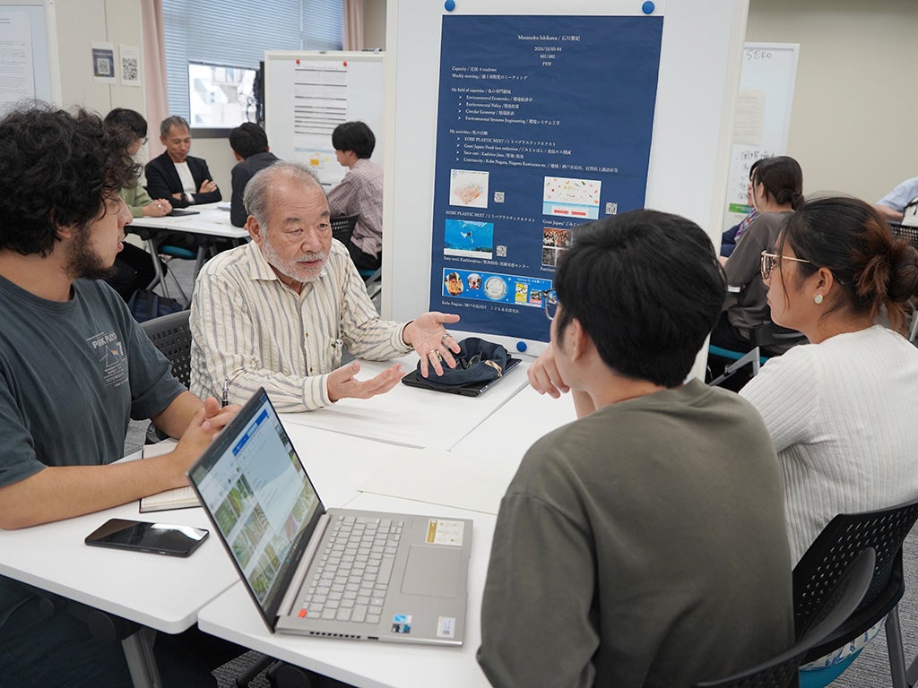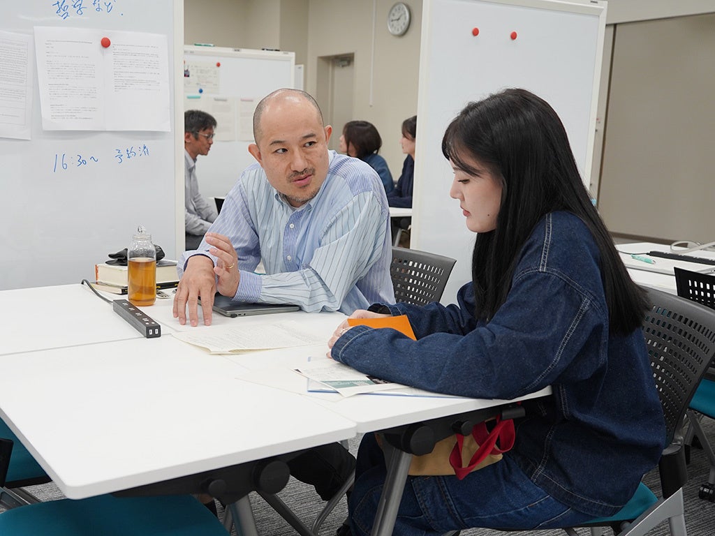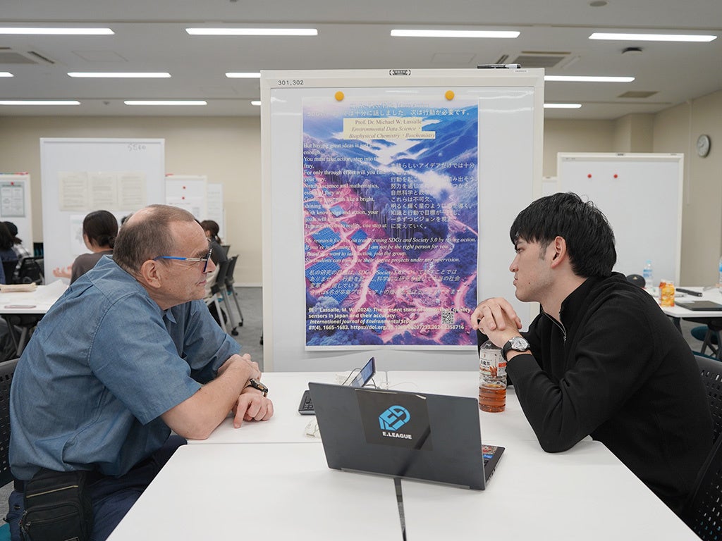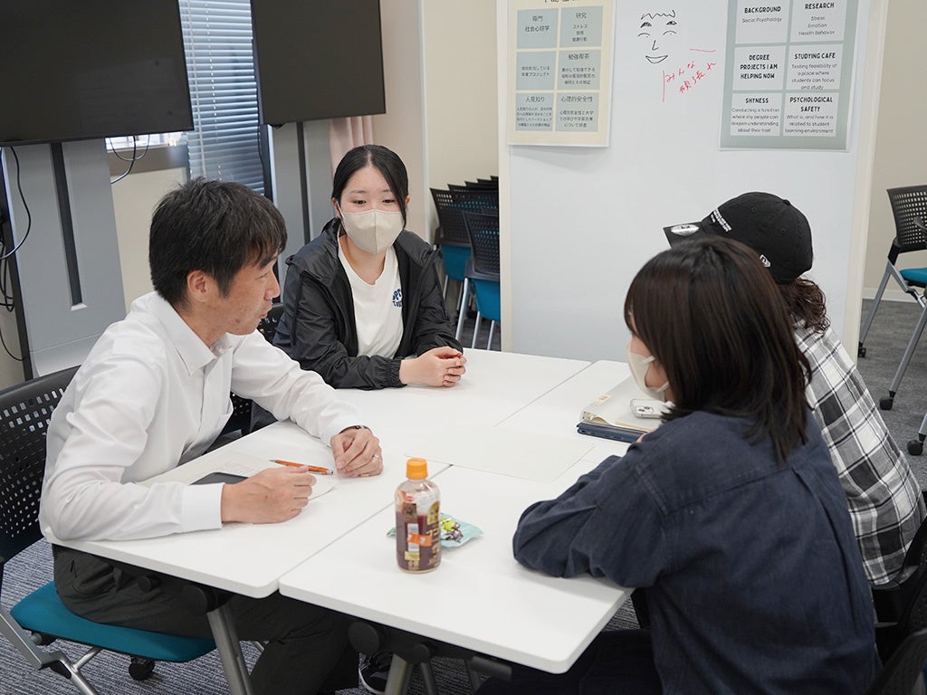 教員紹介ポスターセッションの後は、学生は教員と個別で、自身のプロジェクトテーマについて相談しました。