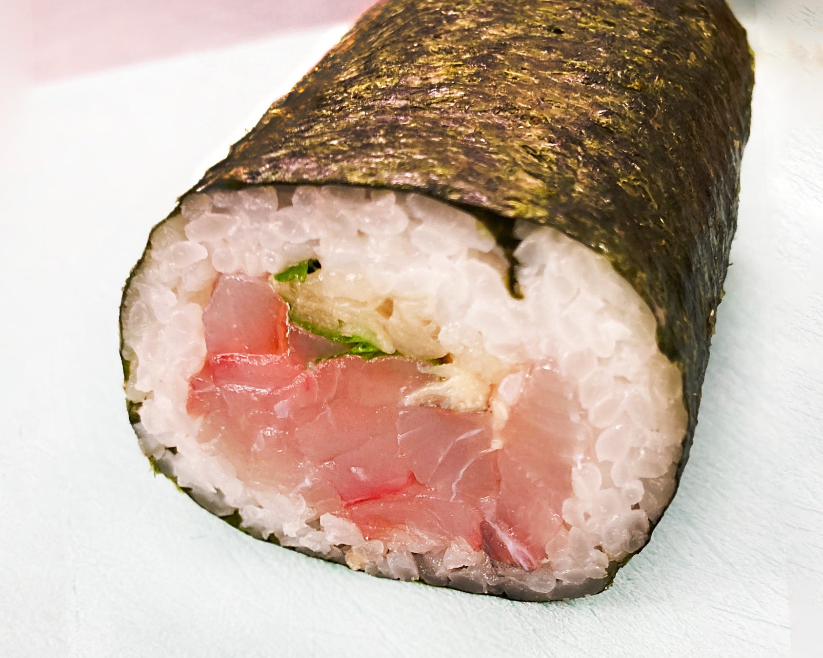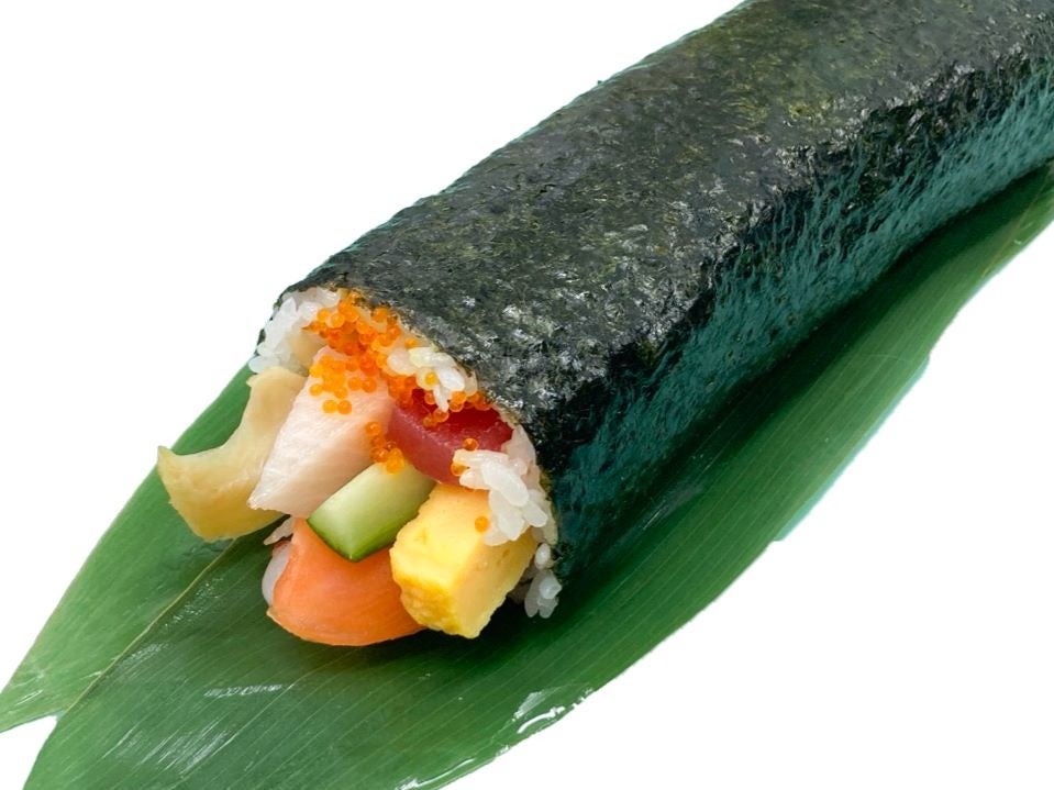 静岡・沼津の市場直送の魚や当社の自社船団が獲った伊豆下田の地魚を使い、ガリと大葉で爽やかさを加えた恵方巻。鮮度抜群の魚介の味わいをふんだんに感じていただけます。