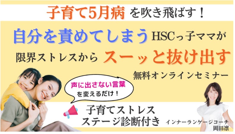 【追加開催】5/26.30ママの5月病を吹き飛ばす限界ストレスをなくすオンラインセミナーで子育てストレスに対処