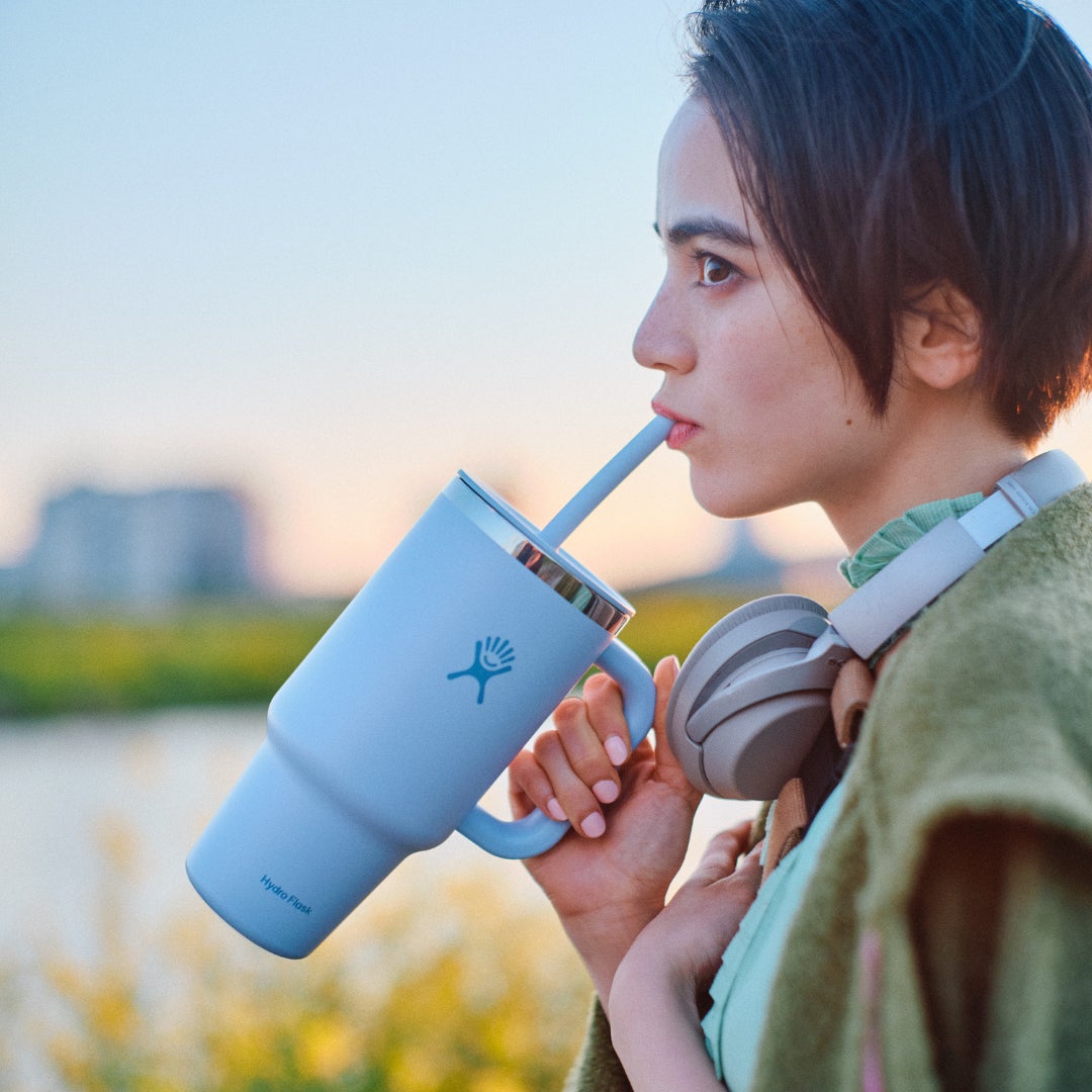大きなサイズでも持ち運びしやすい、ハンドルがついたAll Around Travel Tumbler。24ozサイズは2025年春夏の新作モデルです。