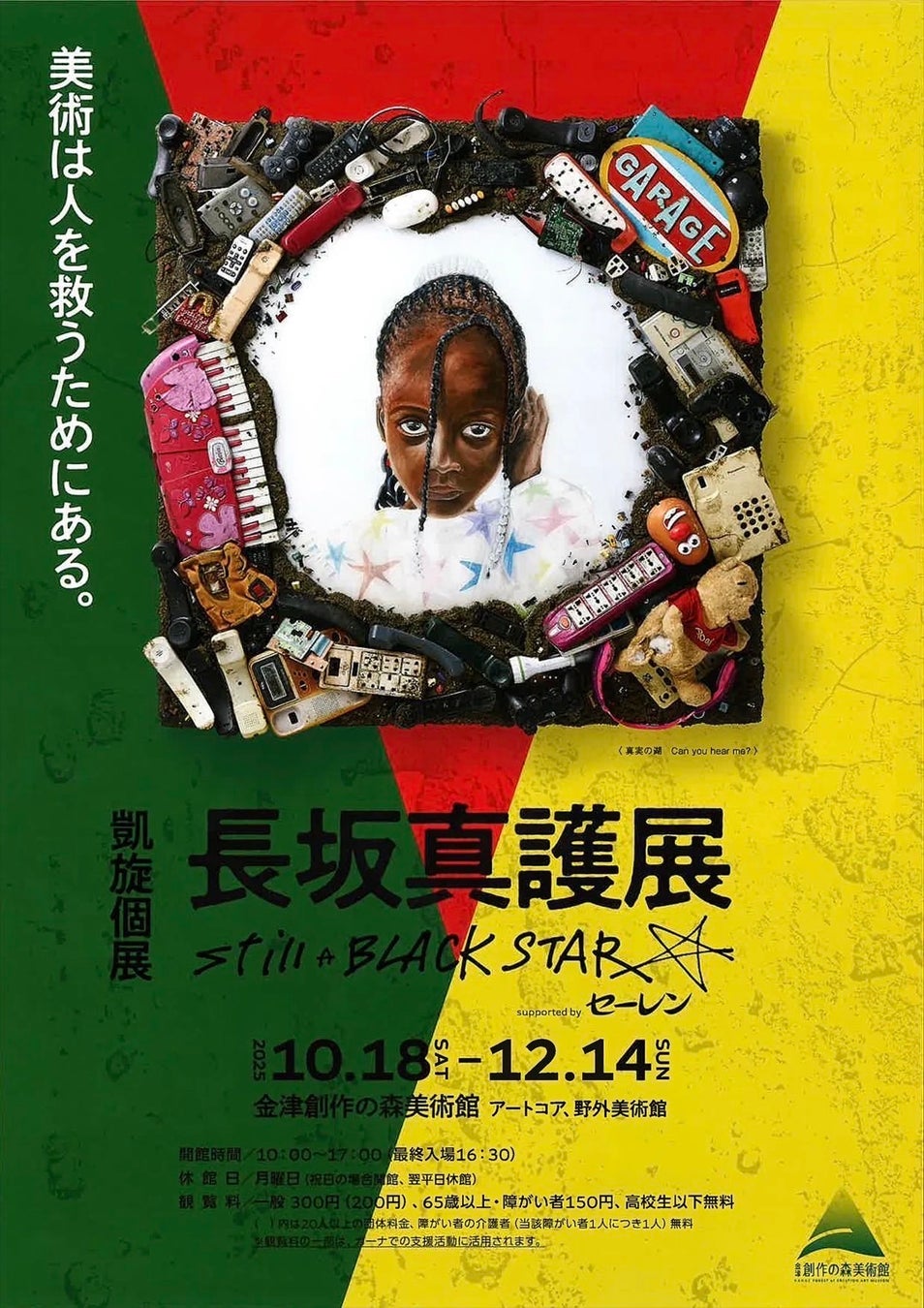 福井県あわら市の金津創作の森美術館では、2025年10月18日(土)から12月14日(日)まで、現代美術家・長坂真護による「Still A BLACK STAR」を開催します。アートを通じて社会問題と向き合い、希望を描き出す作品の数々を、森の自然とともに体感いただける展覧会です。観覧料の一部はガーナでの支援活動に役立てられるため、アート鑑賞がそのまま社会貢献にもつながります。