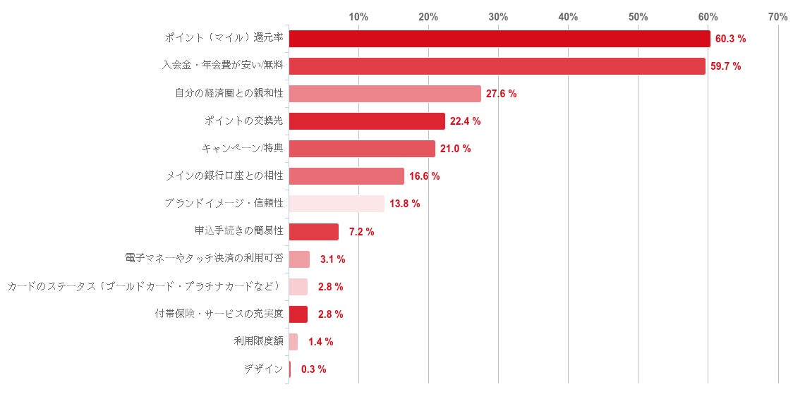 「ポイント(マイル)還元率」、および「入会金・年会費の安さ」を重視している人が圧倒的多数という結果になった。