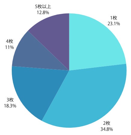 「2枚」が最も多く、「1枚」「3枚」と続く形になったが、複数のクレジットカードを持ち合わせている人が全体の8割近くにのぼることもわかった。