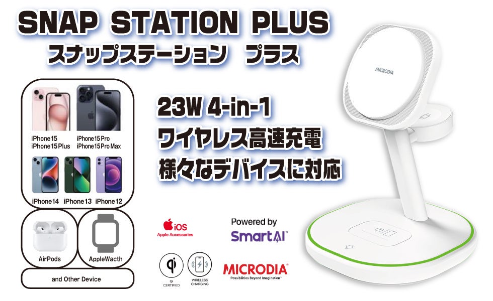 宏福商事合同会社(本社:東京都荒川区)は、MICRODIAの総合代理店としてMICRODIAのワイヤレス充電器「SnapStation PLUS」をヨドバシカメラ マルチメディア(Akiba店、横浜店、梅田店、京都店、仙台店、新宿西口)で販売を9月から順次開始致します。