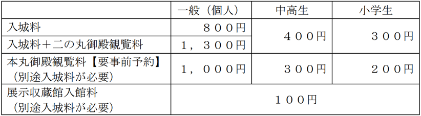 (5) 料 金 4,200円(税込)(※別途入城料が必要)