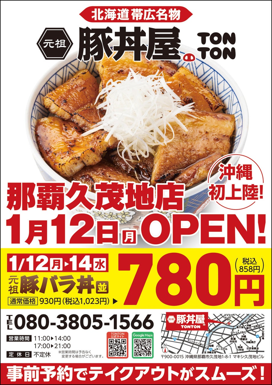 2026年1月12日(月) 元祖豚丼屋TONTON 那覇久茂地店オープン