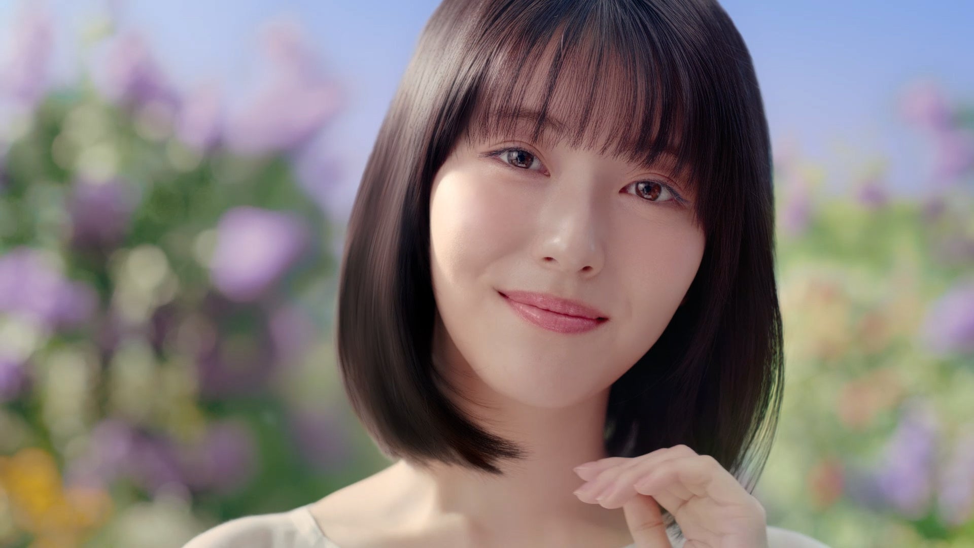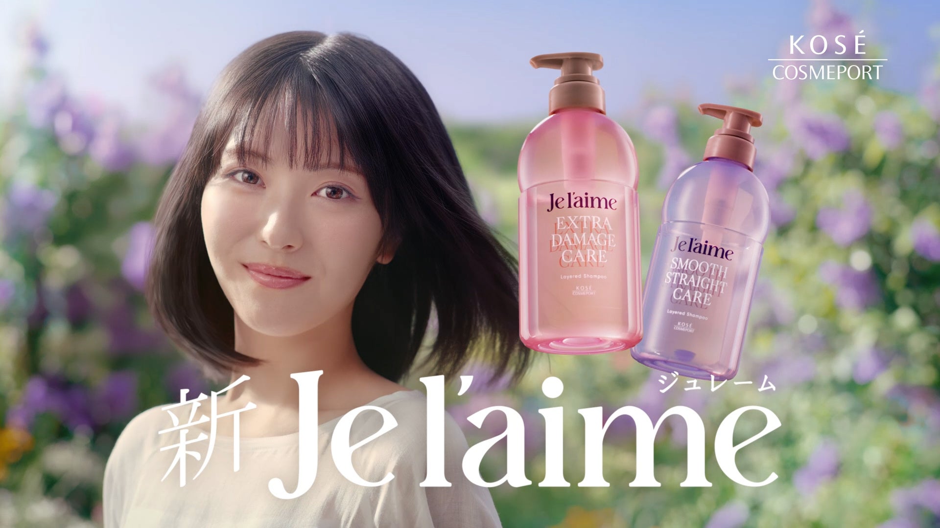 新TVCM『記憶のジュレーム』篇では、ライラックの花びらが舞う草原の中をゆっくりと進む浜辺さんが、新「ジュレーム」の華やかな薫りや艶のある美しい髪の指どおりを柔らかな表情で伝えています。どこか儚くも記憶に残るアートフィルムのような新TVCMにご注目ください。