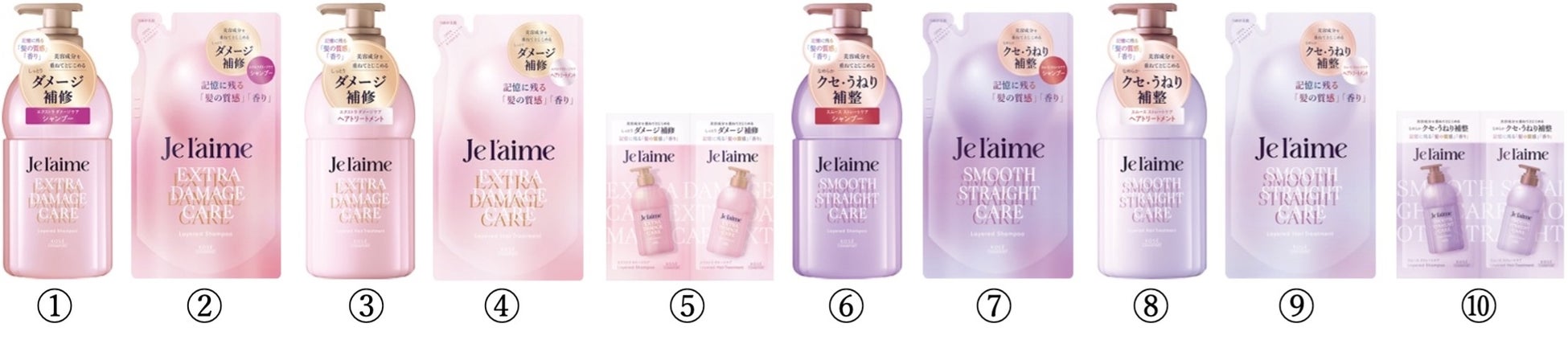 新「ジュレーム」は、美容成分を重ねてとじこめるレイヤードパック処方が叶える、記憶に残る“髪の質感”と、香るたび思い出す、記憶に残るブルーミングライラックの “香り”が特長の新商品です。「エクストラダメージケア」タイプと「スムースストレートケア」タイプの髪悩みに合わせて選べる2タイプのシャンプー・ヘアトリートメントに加え、「ヘアシャイン ブースターオイル」と「ディープ インナーリペア ヘアマスク」のスペシャルケアアイテムを展開。髪のケアだけにとどまらず、生活者の心に寄り添うヘアケア商品です。