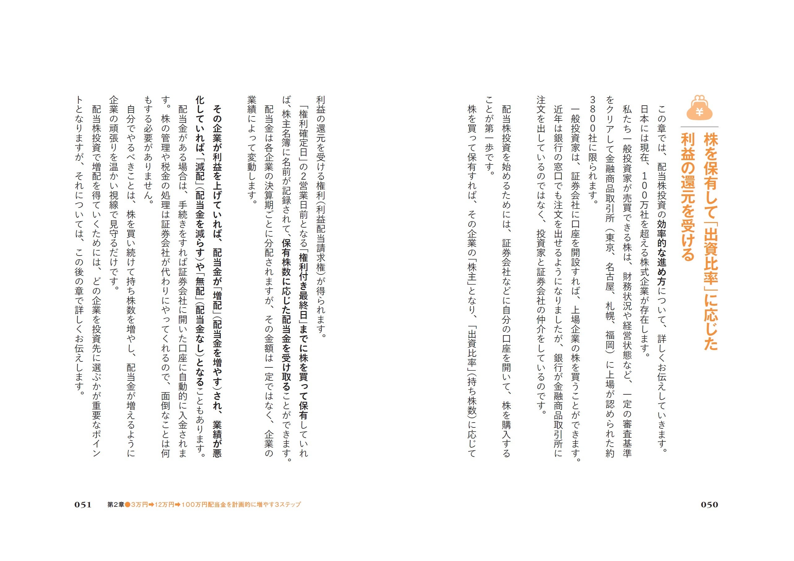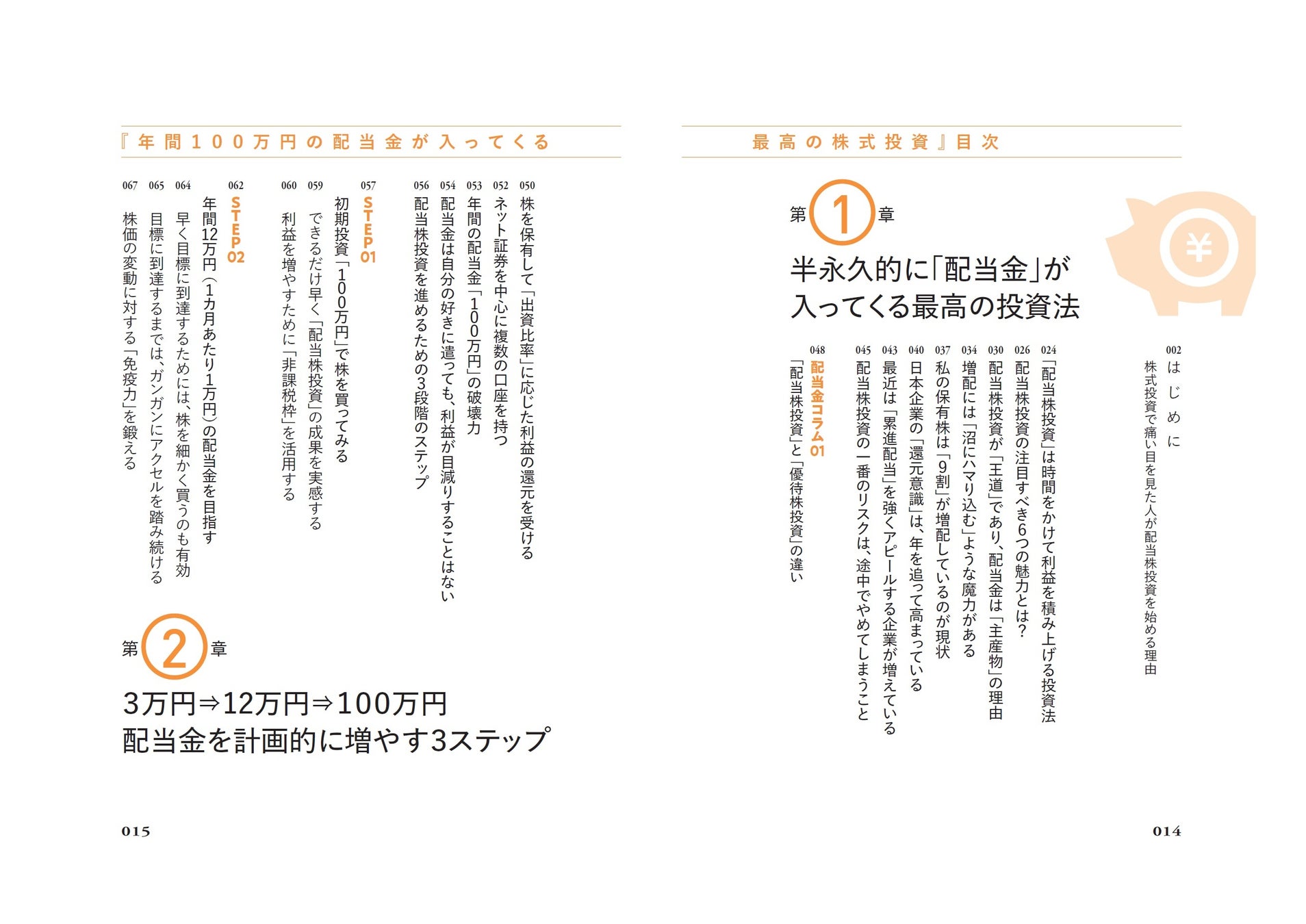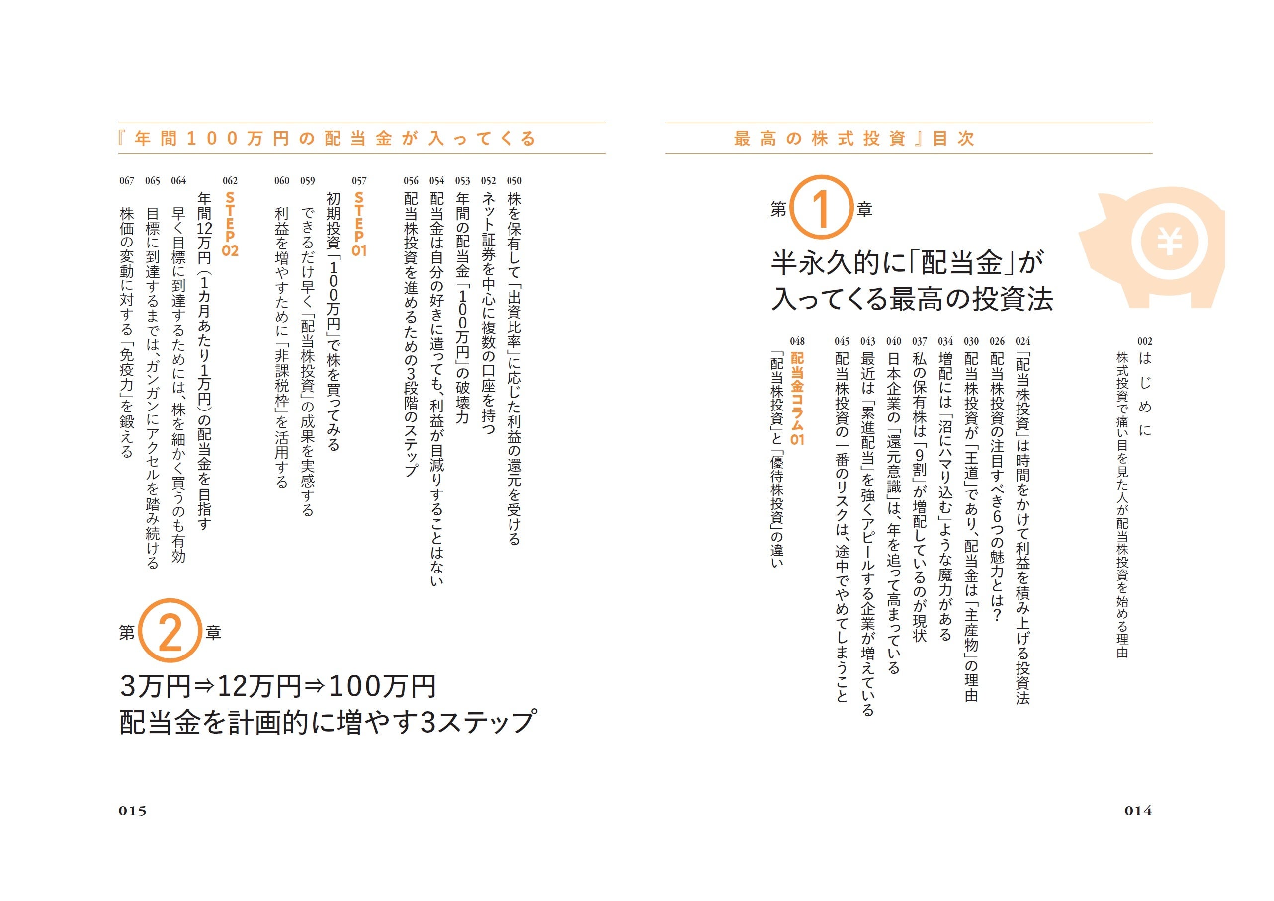 本書では、初心者にはわかりやすく、株式投資を始めている方には新たな発見をしていただくために、配当株投資の持ち味とノウハウを深掘りしてお伝えします。特に、年間100万円の配当金を手に入れるための「3つのステップ」を徹底解説しています。