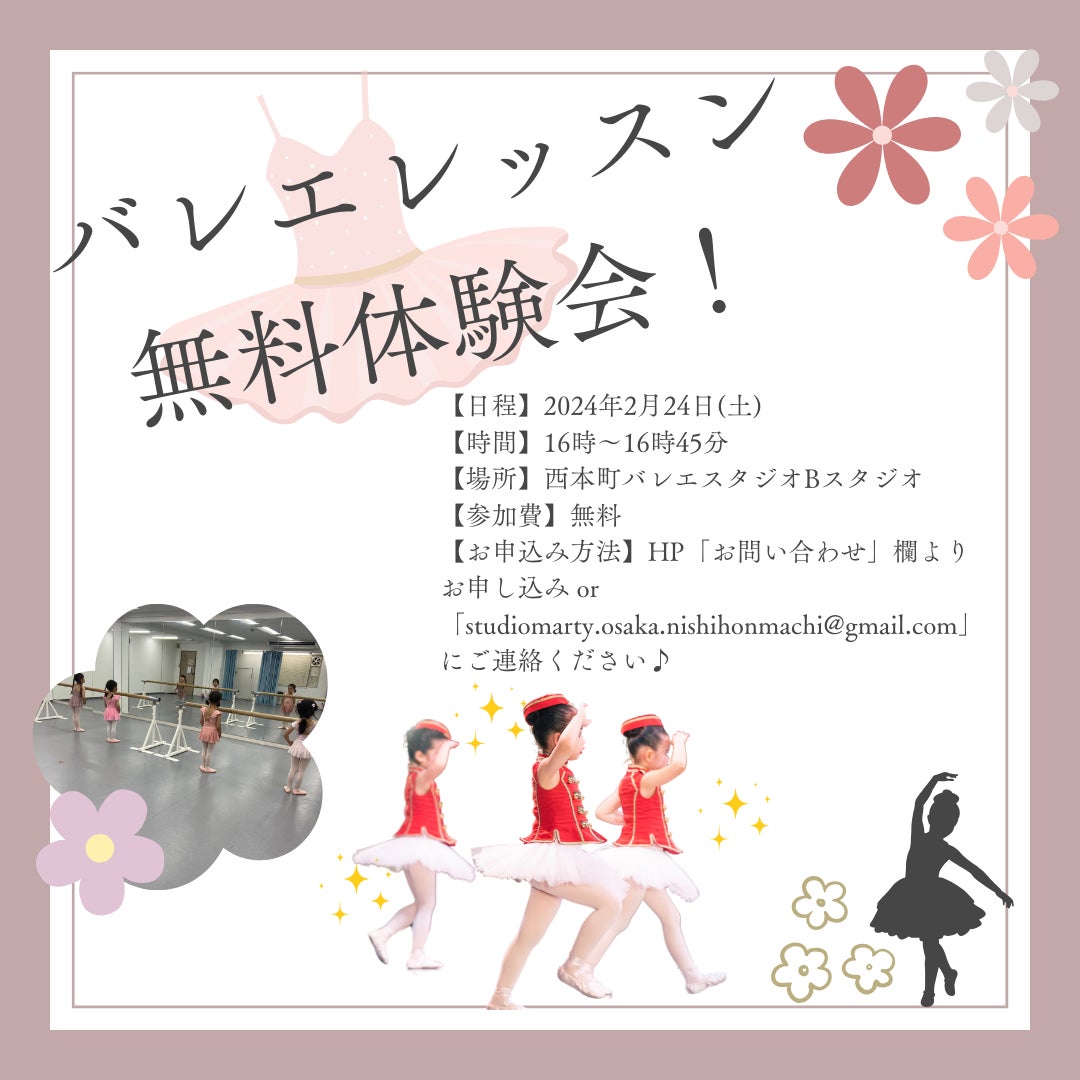スタジオマーティ・西本町バレエスタジオ 子供バレエスクール無料体験会開催!