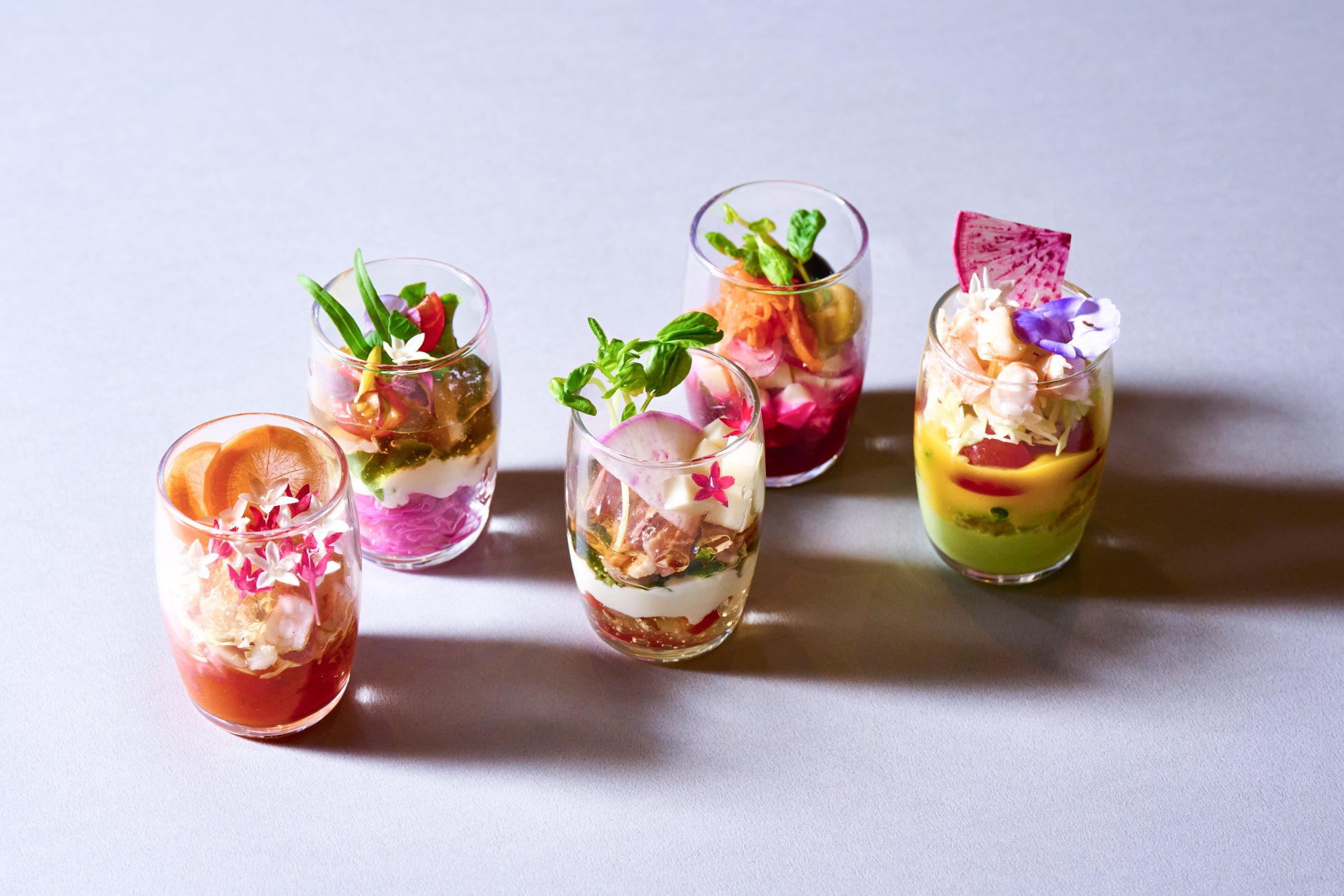 10種類以上の具材を自由に盛り付けるお食事パフェ「MYパフェ」や、デザートタイムに切り分けるフルーツがちりばめられた大きなウエルカムケーキなど、記憶に残る体験を提供します。