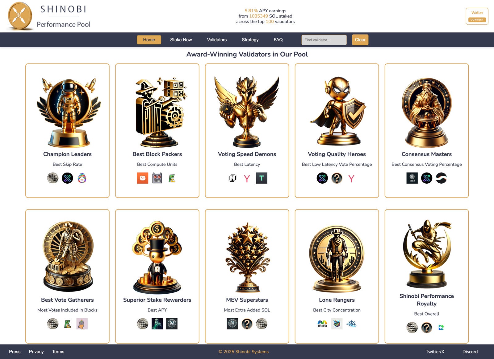 ELSOUL LABO B.V.(本社:オランダ・アムステルダム、代表取締役CEO:川崎文武)と Validators DAO が運営する Epics DAO バリデータが、Solana ステーキングプール「Shinobi Performance Pool」において、性能アワードの「Best Block Packers」と「Best Vote Gatherers」を同時に受賞し、2冠を達成しました。