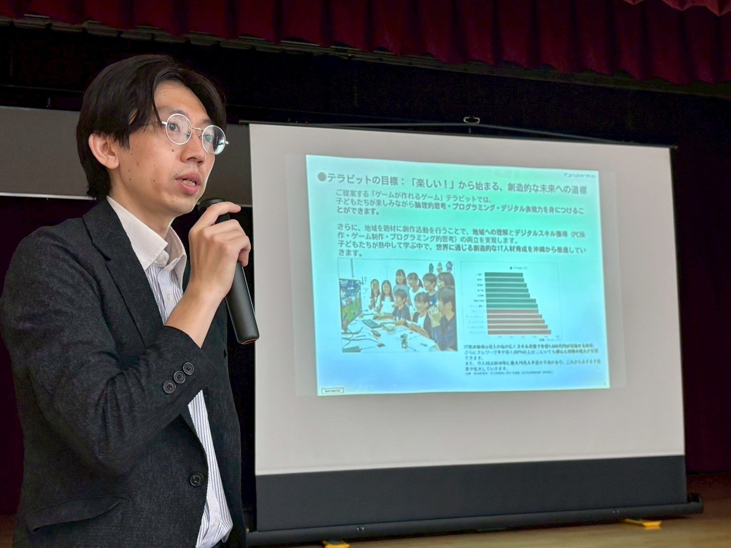 「テラビット」は、2026年4月15日(水)に地域のこどもと大人の居場所「さんすうカフェ」(沖縄県北中城村)と共催で、小中学生向けのゲーム制作体験イベントを開催しました。また、「遊び」を「学び」に転換するゲーム制作体験を起点に子どもたちが主体的にITスキルを習得できる環境の提供に取り組めるよう、PCとNintendo Switch2を寄贈しました。