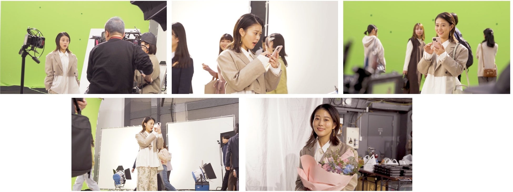 ポイントが貯まる様子を表現するシーンでは、手元は揺らしながら頭は揺らさないように演技したり、目力を強くしたりと様々な角度やパターンを撮影。手に持つスマホの位置はどこが一番見やすいか細かい部分まで確認し、即座に演技に落とし込む高畑さんの演技力にスタッフも絶賛でした。その一方で、笑わないような表情にしてみようという監督にリクエストされた演技では、「あ!笑っちゃった!」と熱心に演技するあまり笑ってしまう可愛らしい姿も見られました。