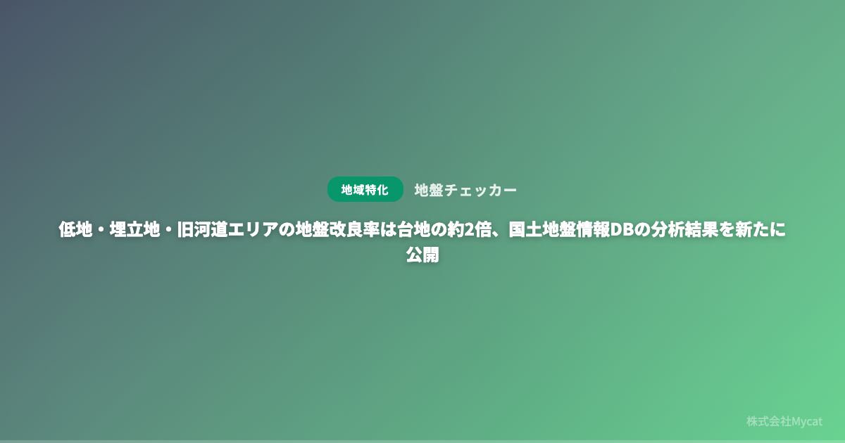 株式会社Mycatが運営する地盤診断サービス「地盤チェッカー」(https://jiban.xyz)は、国土地盤情報データベースのボーリングデータ約25万本を地形区分別に集計した分析結果を新たに公開した。