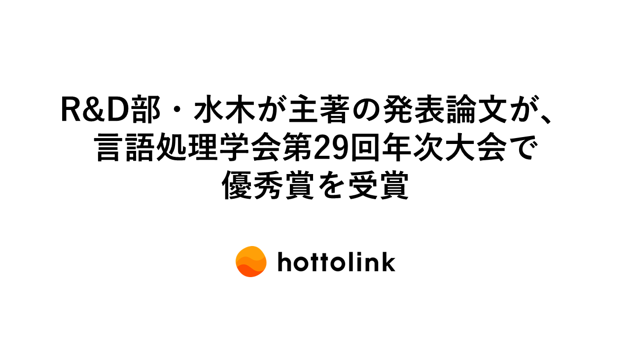 ホットリンク、R&D部・水木が主著の発表論文が、言語処理学会第29回年次大会(NLP2023)で優秀賞を受賞
