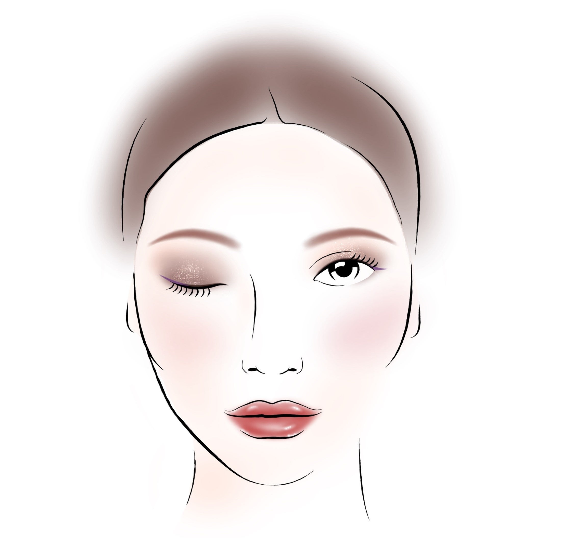 ライラックカラーのアイラインが大胆でエッジィなアクセントをプラスします。