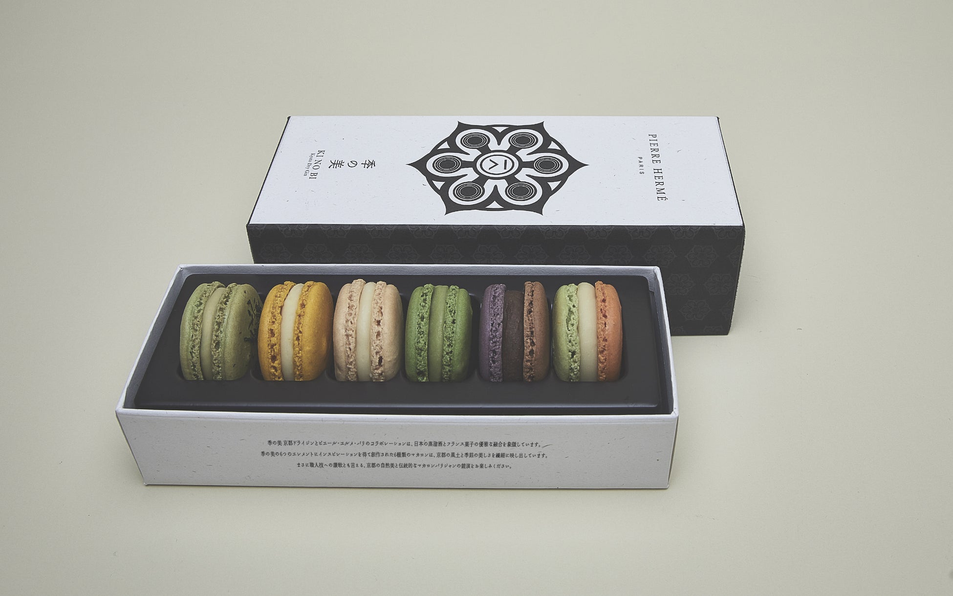 本コラボレーションは、自身のブランドの第一号店を日本に選ぶなど、日本との関わりが深く、これまでも来日の度に日本各地の生産者のもとへ足を運び、ユズ、ワサビ、日本茶など日本ならではの素材を自身のクリエーションに取り入れてきたピエール・エルメと、京都という地が生み出す上質な素材から生み出される「季の美」、日本の土地が生み出す豊かな素材へのリスペクトと、互いの職人技への賞賛が融合し実現。柚子・山椒・生姜・玉露など、「季の美」を構成する京都産を中心としたボタニカル由来の6つのエレメントにインスピレーションを得て創作された、6種類のマカロンが登場します。