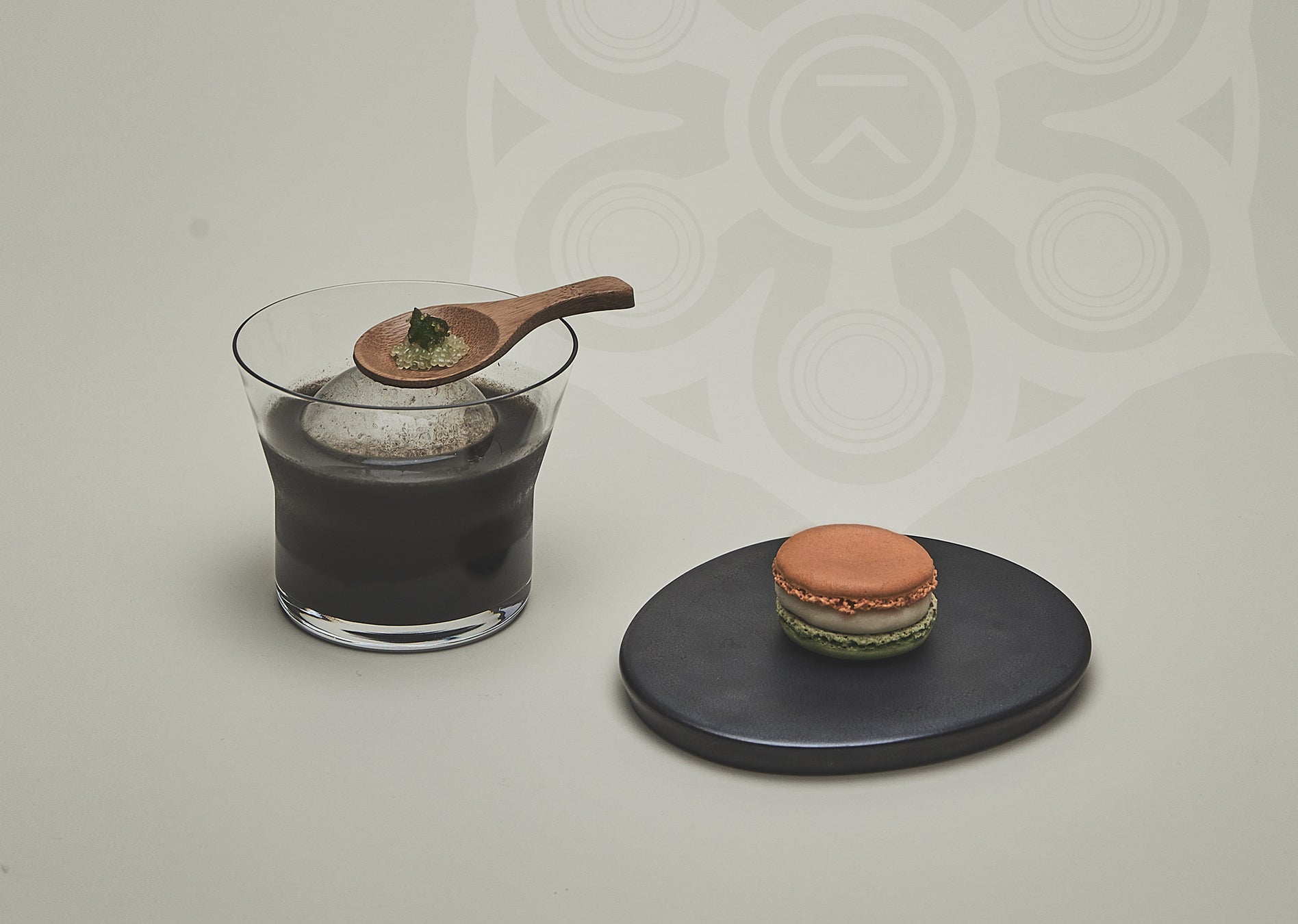 クリーンでありながら、交錯する旨みのスペクトラム。 奥に潜む心地よい渋みが、マカロンとのペアリングによって徐々に構築され、深まる味わい。