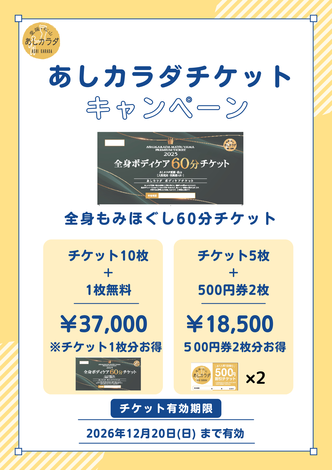 【愛媛・松山・あしカラダ】60分もみほぐしが受けられる「チケット」をお得なお年玉価格で限定販売!