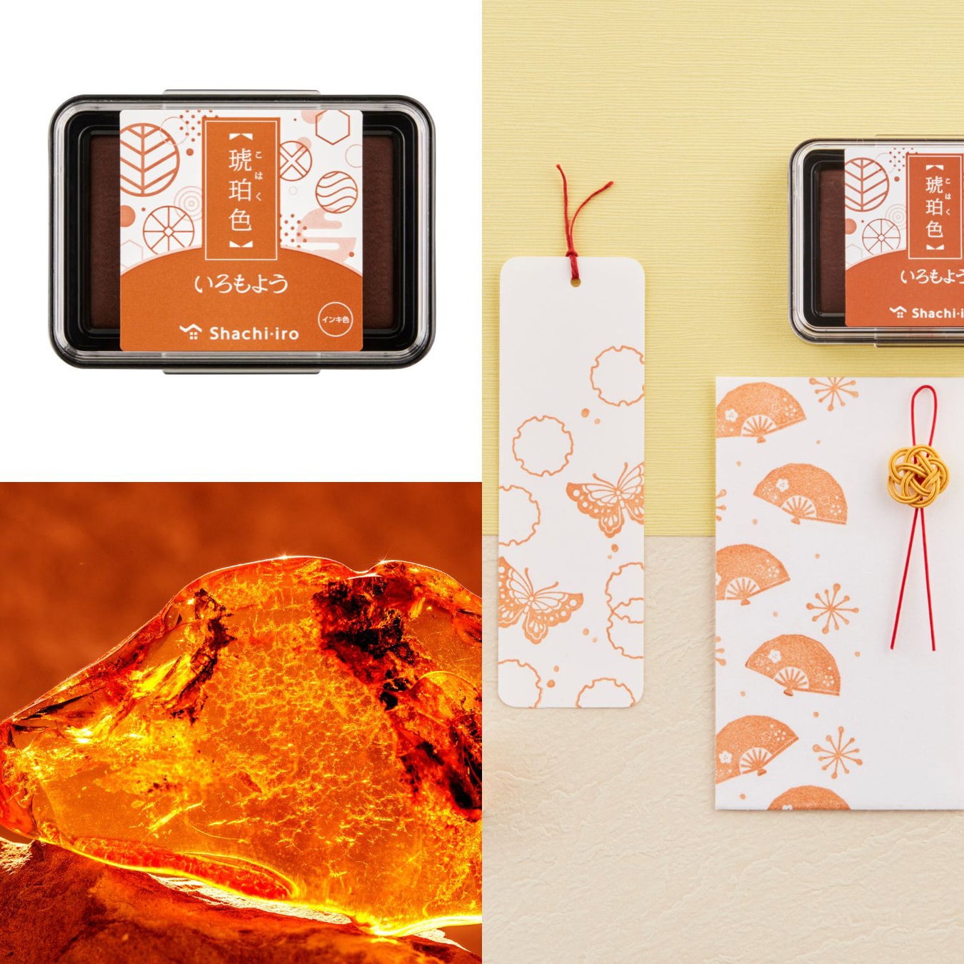 「いろもよう」は、日本の伝統色から選定した29色のカラーバリエーションが揃ったスタンプアートにおすすめのスタンプパッドです。シヤチハタ独自のナノテクノロジーから生まれた油性顔料系インキや、極細繊維の盤面表布を採用したことにより、繊細な模様も鮮明に表現できます。2020年の発売開始以降、シリーズとして2022年に「いろもよう」のミニサイズ「いろもよう わらべ」、2023年にほんのりキラめく光沢インキを使用した「いろもよう 光彩」が加わり、消しゴムはんこやゴム印を使ったアート作品づくりにぴったりの商品としてご好評をいただいています。
