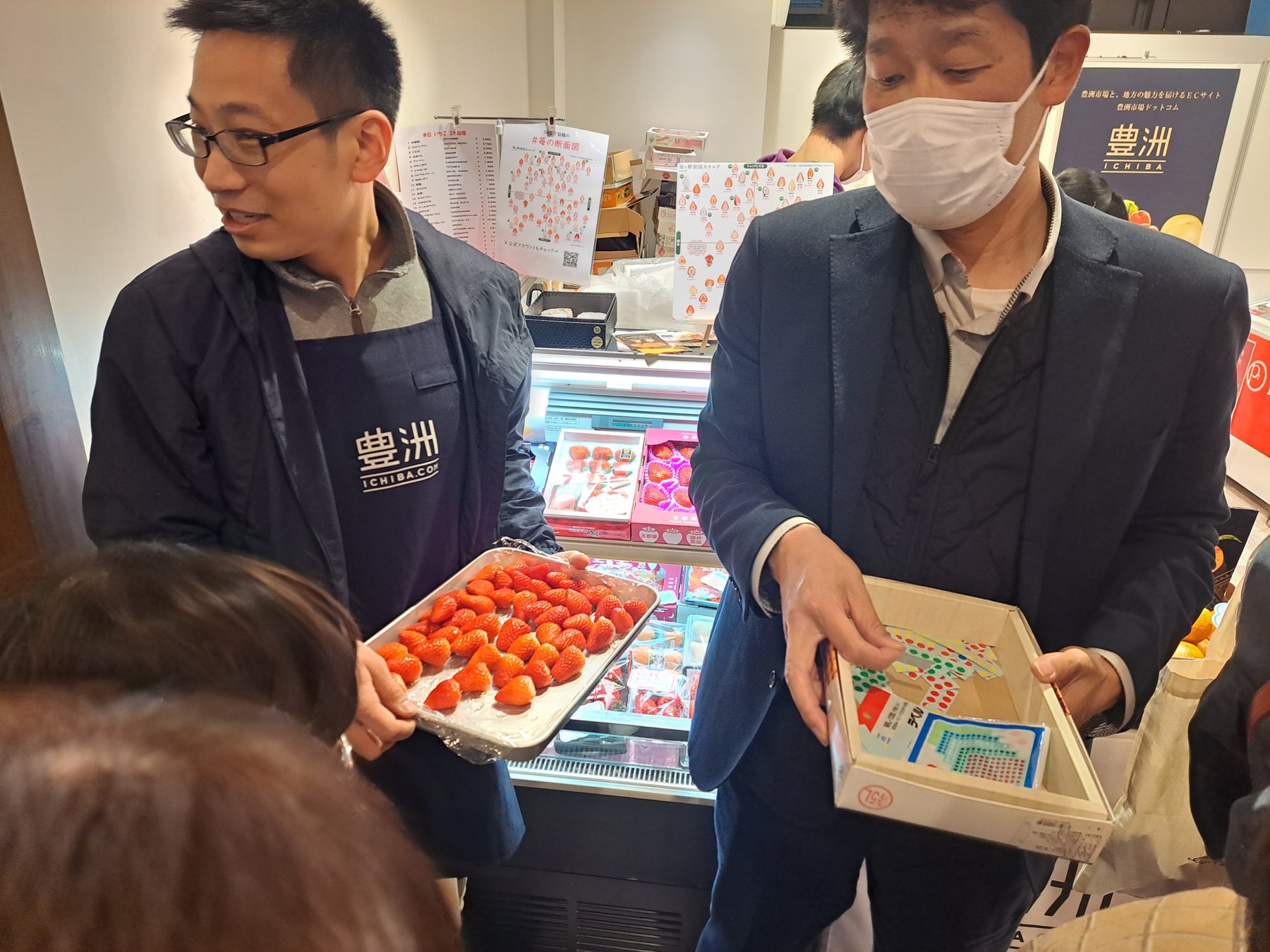 『豊洲市場ドットコム』豊洲千客万来 直営店にて、「JA全農しが」との協働で、新品種イチゴ「みおしずく」の試食会を実施しました