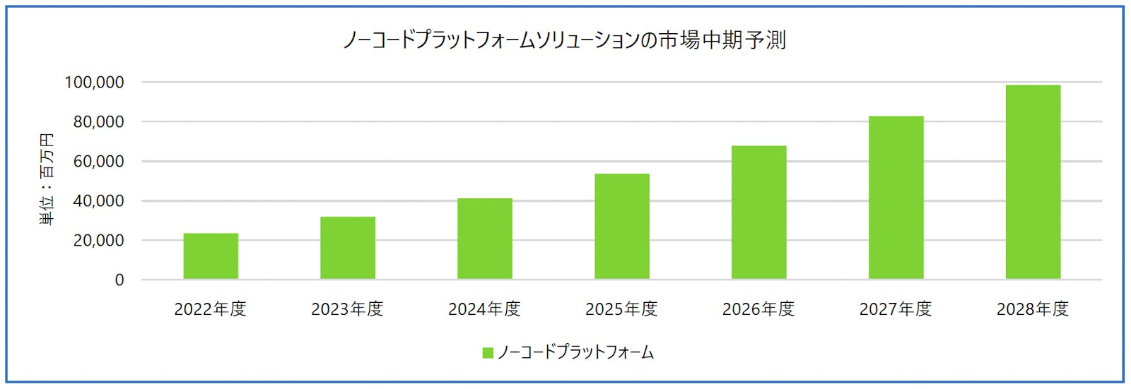 (注釈3)数字はデロイト トーマツ ミック経済研究所「ローコード/ノーコードプラットフォームソリューション市場動向 2025年度版(2025年6月刊)」より引用(https://mic-r.co.jp/mr/03480/)