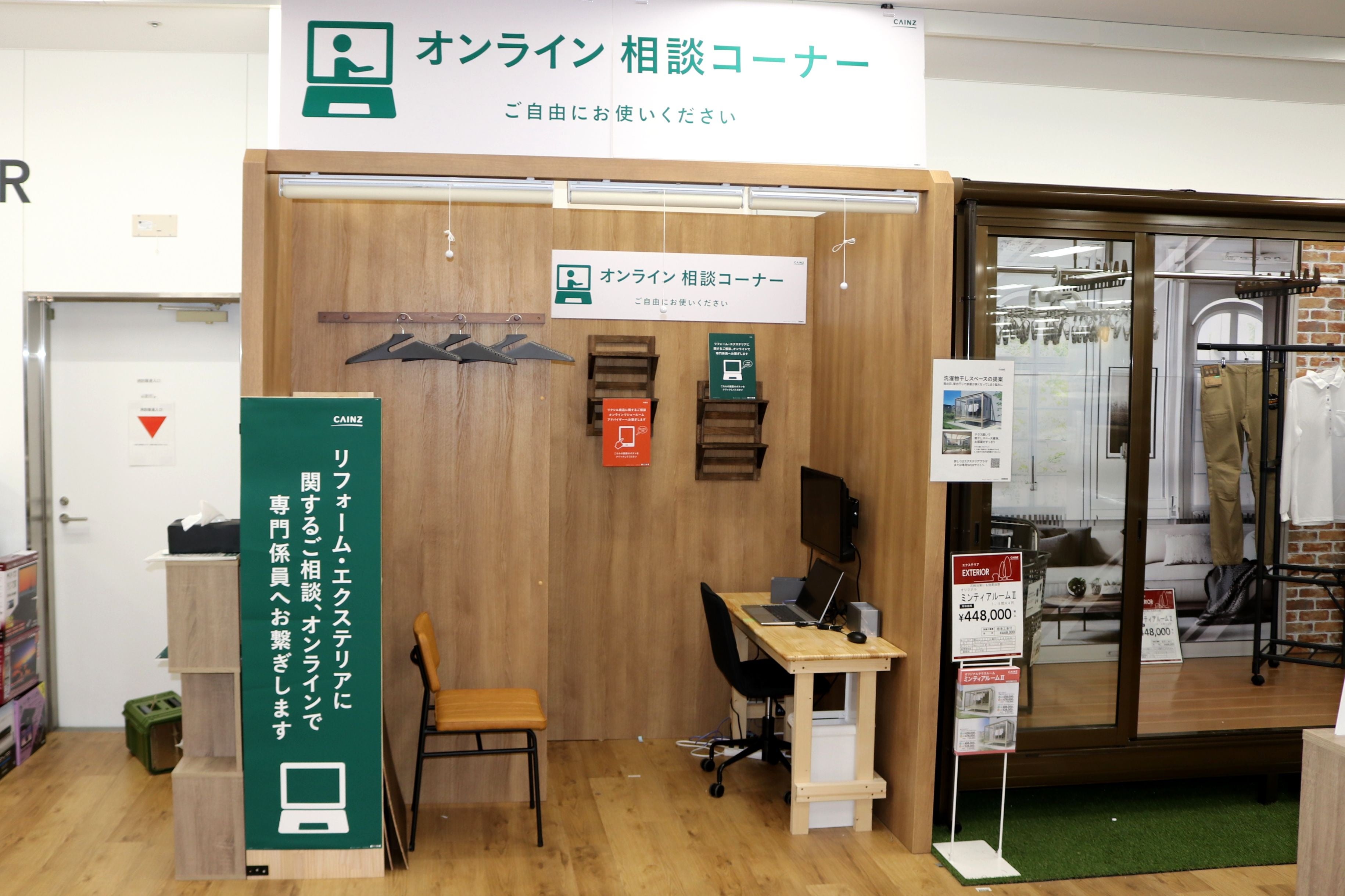 限られたスペースを生かすために、リフォームコーナーでは都内のカインズでは初となるオンライン相談コーナーを設置。また事前予約で欲しい商品を探し回ることなく購入できるCAINZ PickUpロッカーや、購入した商品をその日のうちにご自宅にお届けするお届け便など、カインズの最新のサービスをご用意しています。